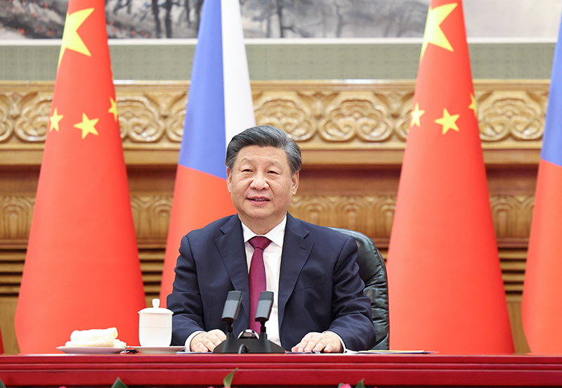 1月9日下午,国家主席习近平在北京同捷克总统泽曼举行视频会晤。新华社记者 翟健岚 摄