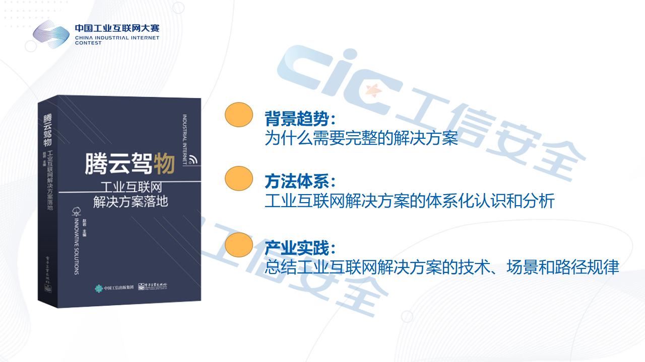 2021年7月29日,由工业和信息化部、国务院国有资产监督管理委员会、浙江省人民政府主办的第三届中国工业互联网大赛在北京拉开帷幕。大赛启动会上,国家工信安中心主任赵岩发布了《腾云驾物——工业互联网解决方案落地》出版物(以下简称:《腾云驾物》)。