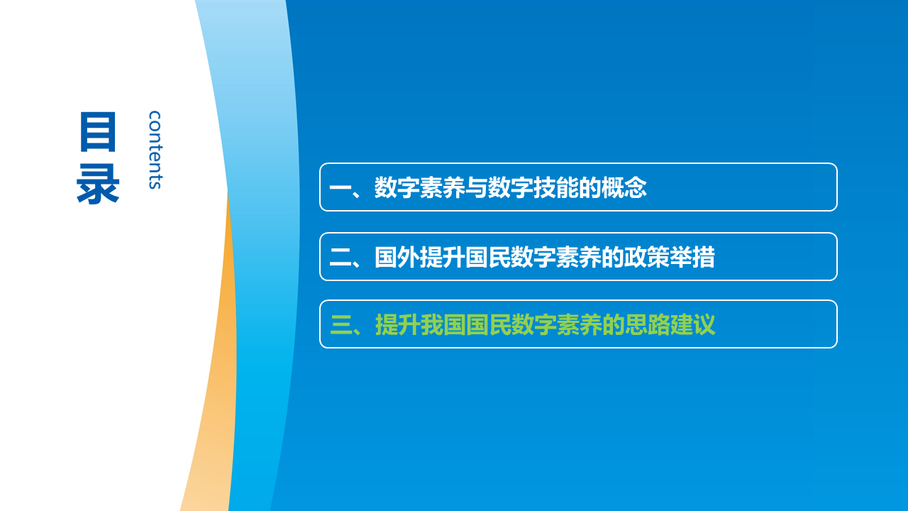 我国国民数字素养提升成效初显。相关指导政策持续出台,劳动者数字工作技能大幅提升,全民数字生活能力明显提高,高水平数字人才培育持续深入。与此同时,也存在数字素养政策规划相对空白、优质数字资源供给相对不足、高水平数字人才相对匮乏、面向残疾人等特殊群体的举措相对较少等不足。