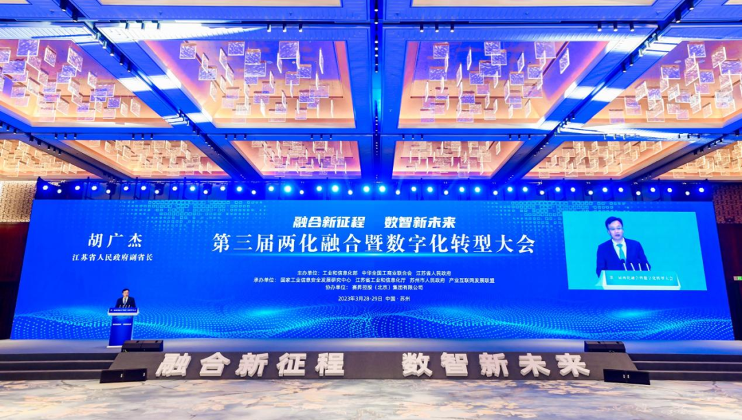 3月28日, 第三届两化融合暨数字化转型大会在苏州召开。大会以“融合新征程 数智新未来”为主题,设置大会开幕式及1场全体会议和13场分论坛,在重庆、贵州、青岛等地设置分会场,开设“云端展览”,以“现场+多地+云端”等形式,系统、多维呈现两化融合在促进工业经济增长和传统产业提升方面的显著成效和最新进展。来自全国各级工信系统政府代表、知名院士与权威专家、龙头企业与服务机构代表参会。