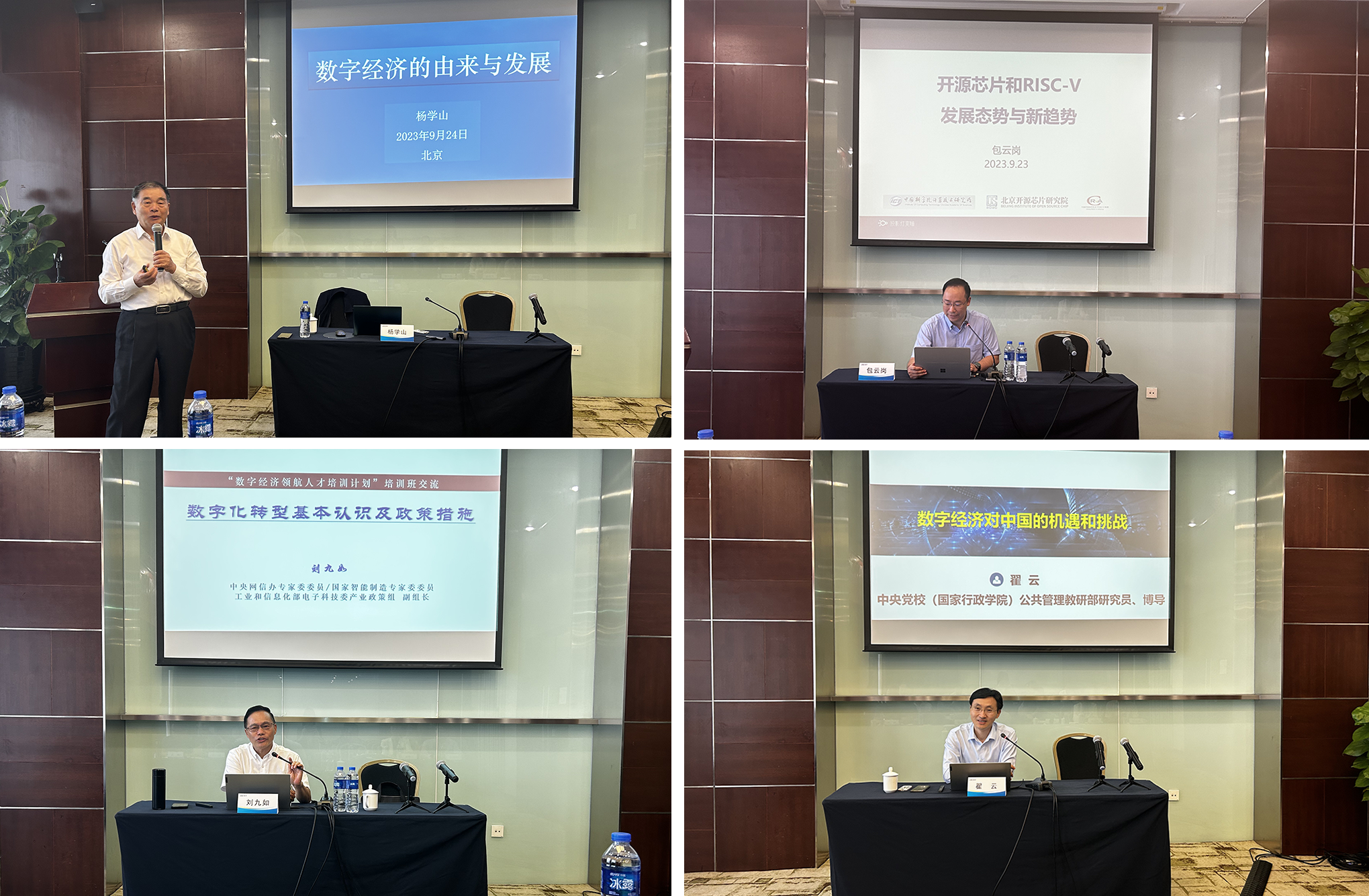 培训班为期2天,特邀工业和信息化部原副部长、中国信息化百人会学术委员会主席杨学山,中国科学院大学计算技术研究所副所长、中国科学院大学计算机学院副院长包云岗,中央网信办专家委委员、国家智能制造专家委委员、工业和信息化部电子科技委产业政策组副组长刘九如,中央党校(国家行政学院)公共管理教研部研究员、博导翟云分别以《数字经济的由来与发展》《开源芯片和RISC-V 发展态势与新趋势》《数字化转型基本认识及政策措施》《数字经济对中国的机遇与挑战》为主题进行授课,深入浅出地讲解数字经济发展重点方向的政策、宏观展望以及相关数字技术的开发与应用,切实引导各位学员懂政策、晓趋势、明方法。
