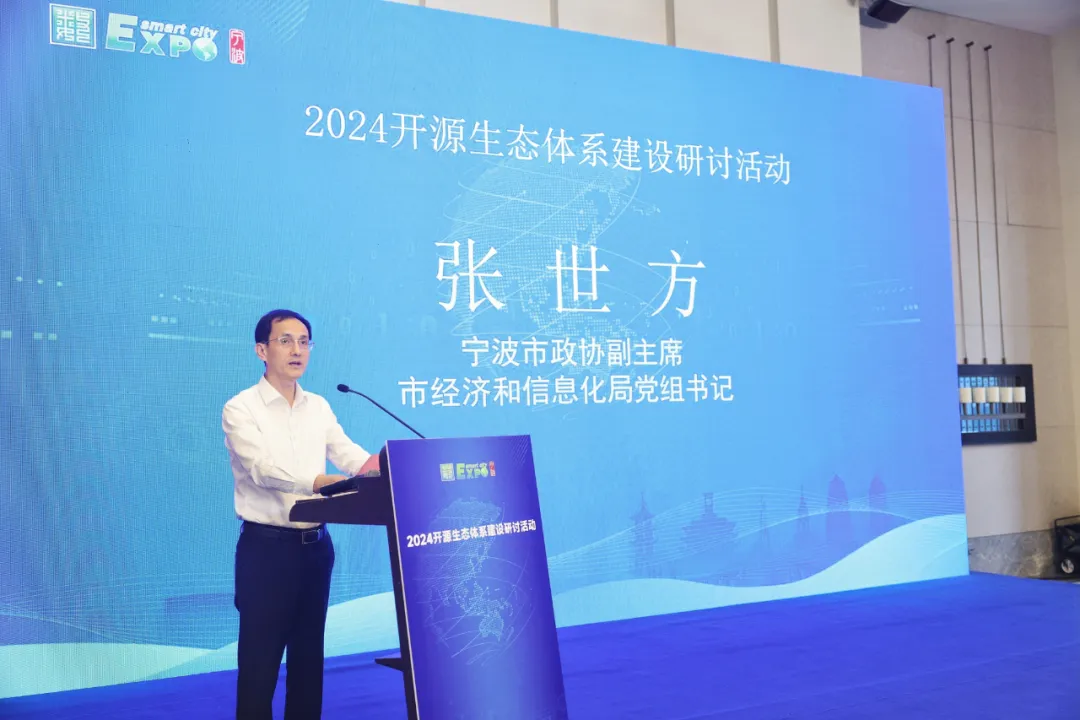 张世方向出席会议的领导及专家表示热烈欢迎。他表示,宁波市作为全国首个制造强国战略试点示范城市,正积极推进开源生态体系建设,开源相关的政策、平台、资金和人才等要素资源加速汇聚,在我国推进新型工业化的大背景下,宁波制造业数字化、智能化转型进程加速,正在成为开源技术创新和应用推广的“试验田”和“应用场”下一步,为深入贯彻党中央、国务院关于开源的决策部署,宁波市将对标数字浙江战略任务要求,加快推进开源体系建设全力打造开源生态繁荣发展示范标杆城市