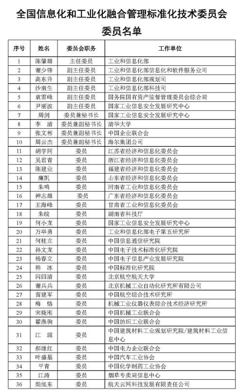 两化融合标委会主要负责两化融合管理等领域国家标准的制修订工作,由工业和信息化部负责日常管理和业务指导,秘书处由优米棋牌软件怎么样(工业和信息化部电子第一研究所)承担。第一届两化融合标委会由来自各级政府、科研院所、重点企业、行业组织、跨国企业的68名知名专家学者组成。