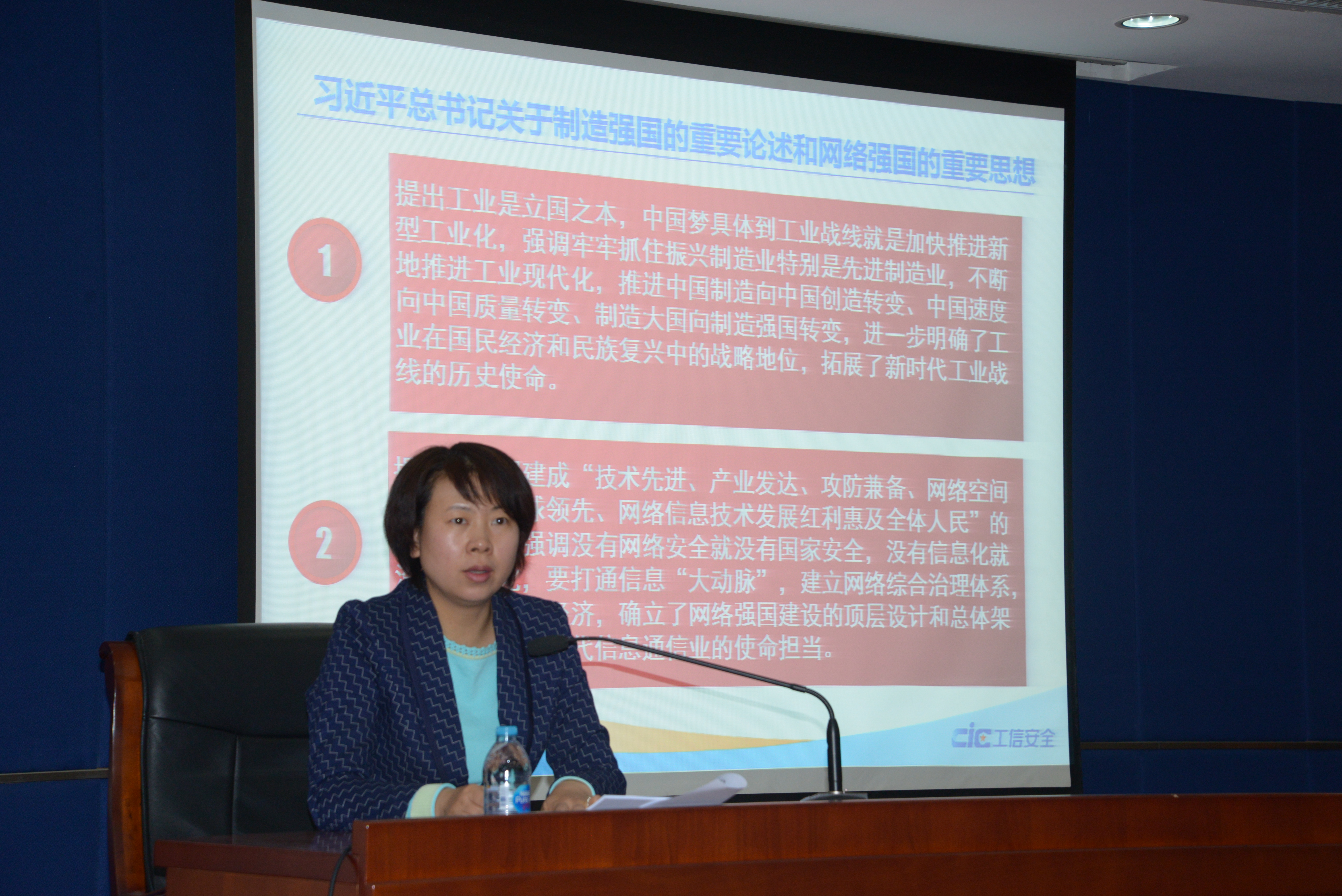 中心主任、党委副书记尹丽波同志作了题为“深入学习贯彻习近平总书记关于制造强国的重要论述和网络强国的重要思想 着力提升“两个强国”支撑服务能力”的党课报告。尹主任的党课主要围绕以下四个方面展开:一是深刻领会习近平总书记关于制造强国的重要论述和网络强国的重要思想,增强提升“两个强国”支撑服务能力的政治自觉;二是科学认识工业和信息化事业新的历史方位,找准提升“两个强国”支撑服务能力的战略定位;三是认真贯彻落实党中央和部党组战略部署,加快提升“两个强国”支撑服务能力;四是不忘初心,牢记使命,努力开创“两个强国”支撑服务工作新局面。她强调,加快制造强国和网络强国建设任务艰巨,中心要立足自身使命职责,以习近平新时代中国特色社会主义思想和党的十九大精神为指引,围绕制造强国、网络强国建设,在部党组的统一部署下,肩负起“保障工信安全的国家队,服务产业创新的思想库”的重要使命,坚定信念,砥砺前行,加快推进业务转型,把中心建设成具有一流管理、一流技术、一流人才、一流服务的国家级工业信息安全研究机构。中心党委委员、副主任李新社和地方业务处何劲同志、办公室张芳芳同志分别结合个人分管工作实际、地方挂职、部党校科级班学习情况作了交流发言。