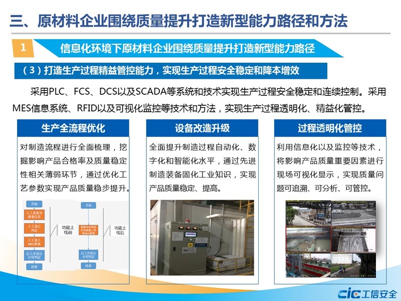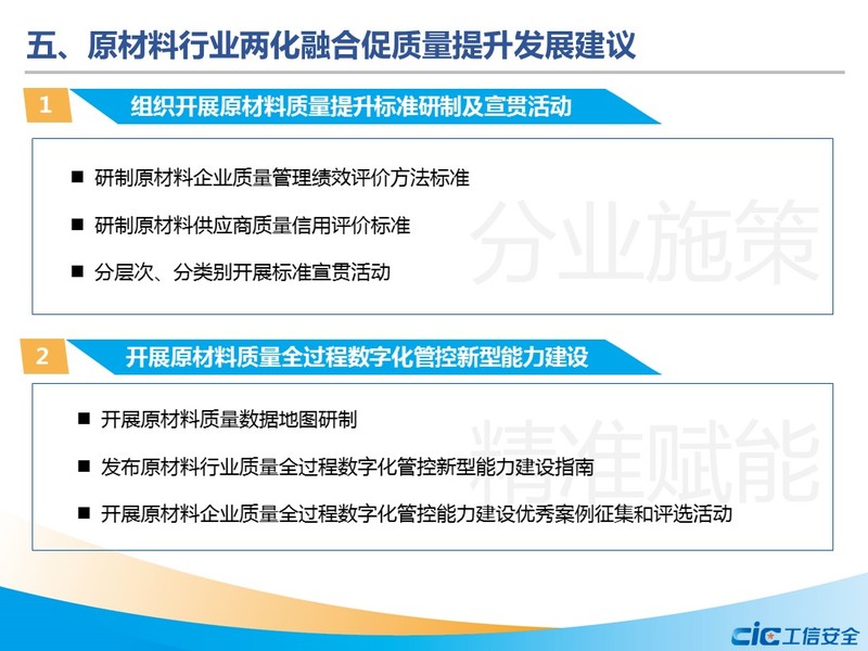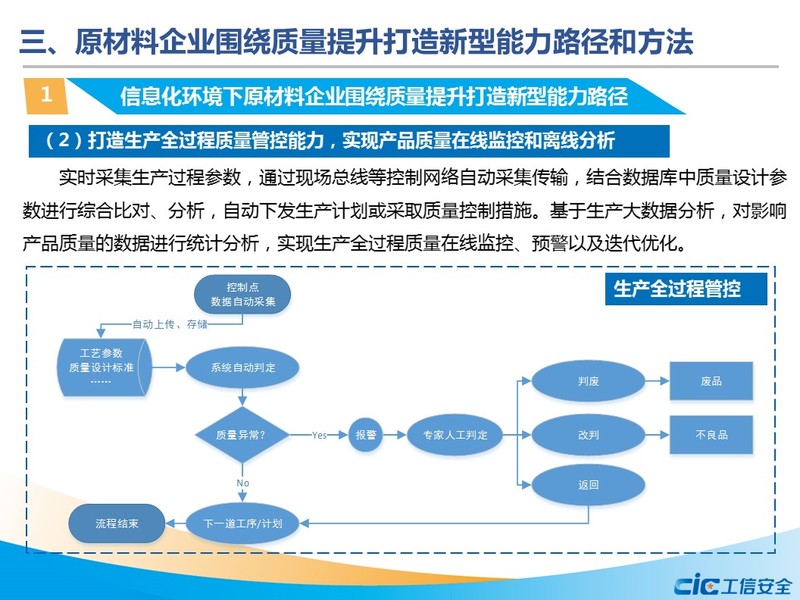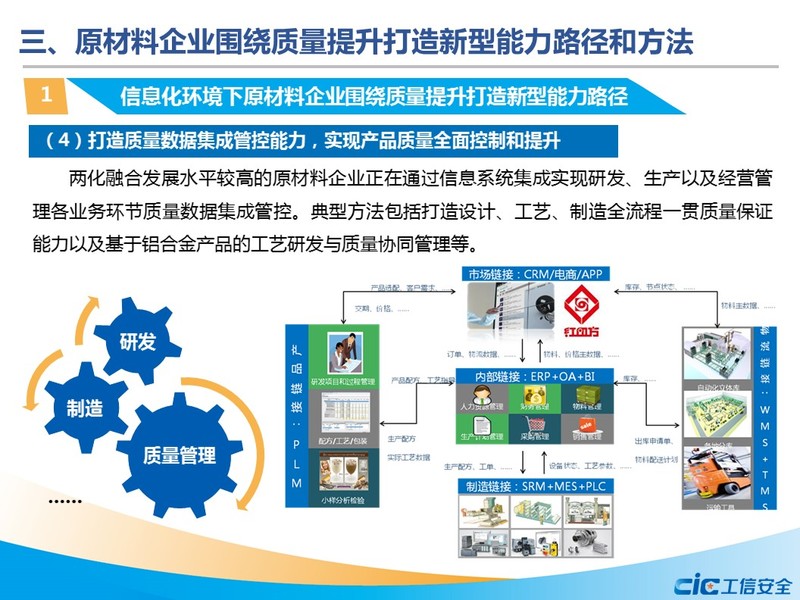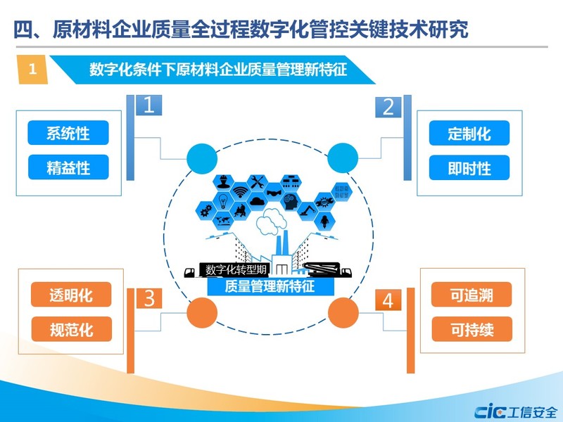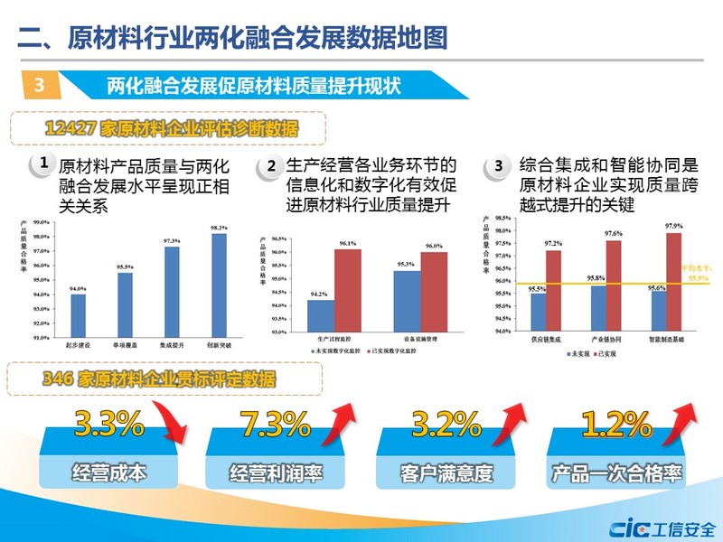 在工业和信息化部科技司的支持和指导下,课题组系统分析了原材料行业发展现状和质量提升面临的瓶颈问题;基于万余家原材料企业评估诊断数据,分析了两化融合发展对产品质量、客户满意度以及经营利润等关键指标的提升情况,明确了两化融合发展对原材料企业质量效益转型升级的重要价值;以三百余家原材料企业两化融合管理体系评定实践,对原材料企业打造质量提升相关新型能力的细分路径和具体方法进行系统梳理和总结;结合数字化条件下原材料企业质量管理新特征,创新地开展质量全过程数字化管控关键技术研究,并提出了原材料行业两化融合促质量提升发展建议。项目研究为原材料企业质量和效益的提升开拓了思路,提供了指引,是两化融合管理体系在特定行业、领域应用的重要探索,对原材料行业供给侧结构性改革具有重要意义。