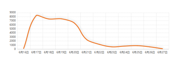 6月17-19日,格兰仕3天连发7封声明、2个视频,称“格兰仕在天猫的搜索陆续出现异常”“请天猫高层站出来说话”引发关注,相关传播热度于17日当天到达峰值。6月20日,市场监管总局、发改委、工信部等8部门联合启动“网剑行动”,严查电商平台“二选一”“刷单”等违法行为,助推该事件在20日、21日始终保持着较高的热度;随后相关传播热度逐渐降温。