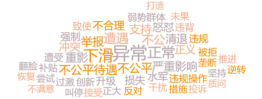 通过词频分析可知,“异常”“下滑”“不公平待遇”“严重影响”“违规操作”“举报”等成为此次事件的高频热词,表明格兰仕公开抨击天猫声明中提及的“搜索异常,从而导致销量下滑的问题”在舆论场上的传播力度较高;“弱势群体”“垄断”“违规”则表明格兰仕在该事件中相对天猫的“弱势”地位被广泛认可。