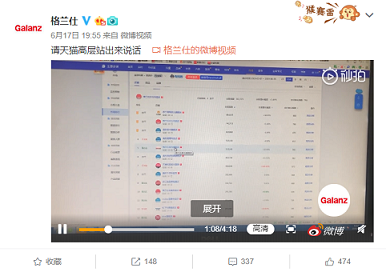 6月17日晚间,微博“@路飞加油鸭”发布视频称,天猫对其进行屏蔽,致使店铺损失惨重,获得大量转发,助推舆情高涨。格兰仕官微于18日凌晨也对该官微进行了转发。