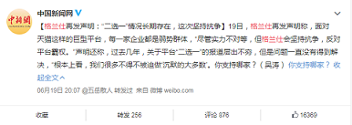 6月20日下午,格兰仕针对该事件再次发博,并“@”天猫官微称,搜索端异常至今未解决,且抨击天猫在格兰仕发布的声明下面雇佣水军团队,企图引导舆论,弱化天猫“二选一”的错误做法。随后,格兰仕发布第8封声明《另有隐情,还是胆大包天?》,将天猫定义为“霸权平台”,称“平台二选一,不是仅针对一两个品牌,而是面对大多数中小企业和广大消费者的欺凌,不仅不能充分反映市场机制下的供给和需求,还严重侵害企业的自主经营权和消费者的自由选择权。”舆论场上有关“二选一”的各种报道和评论层出不穷。