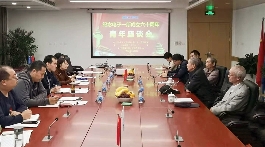 2019年11月7日,一所第十九、第二十一党支部、第十二分工会、评测鉴定所、交流合作处联合召开“庆祝一所成立60周年青年座谈会”,邀请电子一所原党委书记段学理、原所长王人杰、原财务负责人钱顺昌三位前辈就一所发展历史与青年同志进行座谈交流。一所党委副书记吕坚及党群工作处和离退休办的部分同志参加了座谈会。