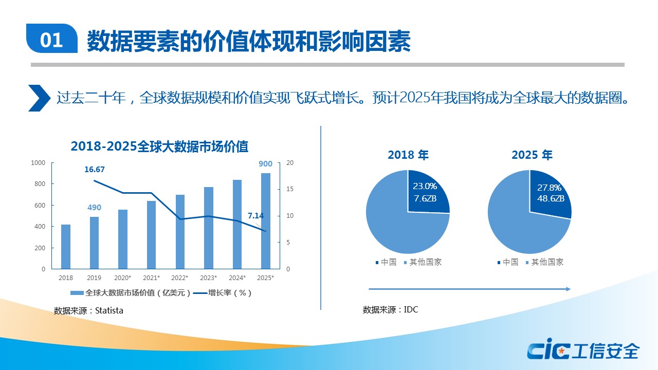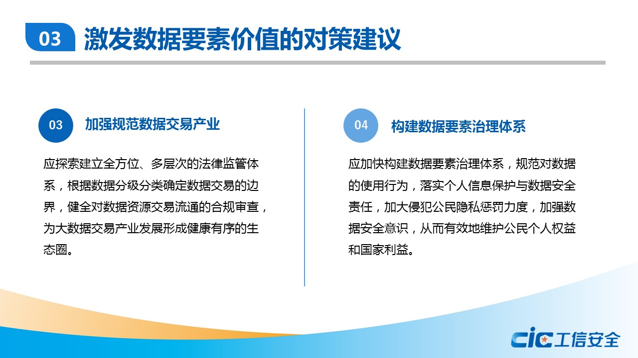 报告指出,据统计,2018年我国数据规模为7.6ZB,约占全球的23.0%,预计2025年增至27.8%,我国将成为全球最大的数据圈。因此,将我国的数据资源优势转化为经济增长优势具有重要意义。报告建议,尽快建立数据价值评估体系,形成系统的数据交易定价规则。健全数据产权制度体系,促进数据资源交易流通。加强规范数据交易产业,形成健康有序的数据交易生态圈。完善数据要素市场治理体系,加大数据安全管理和个人信息保护力度,确保数据交易市场公平竞争和安全运行。