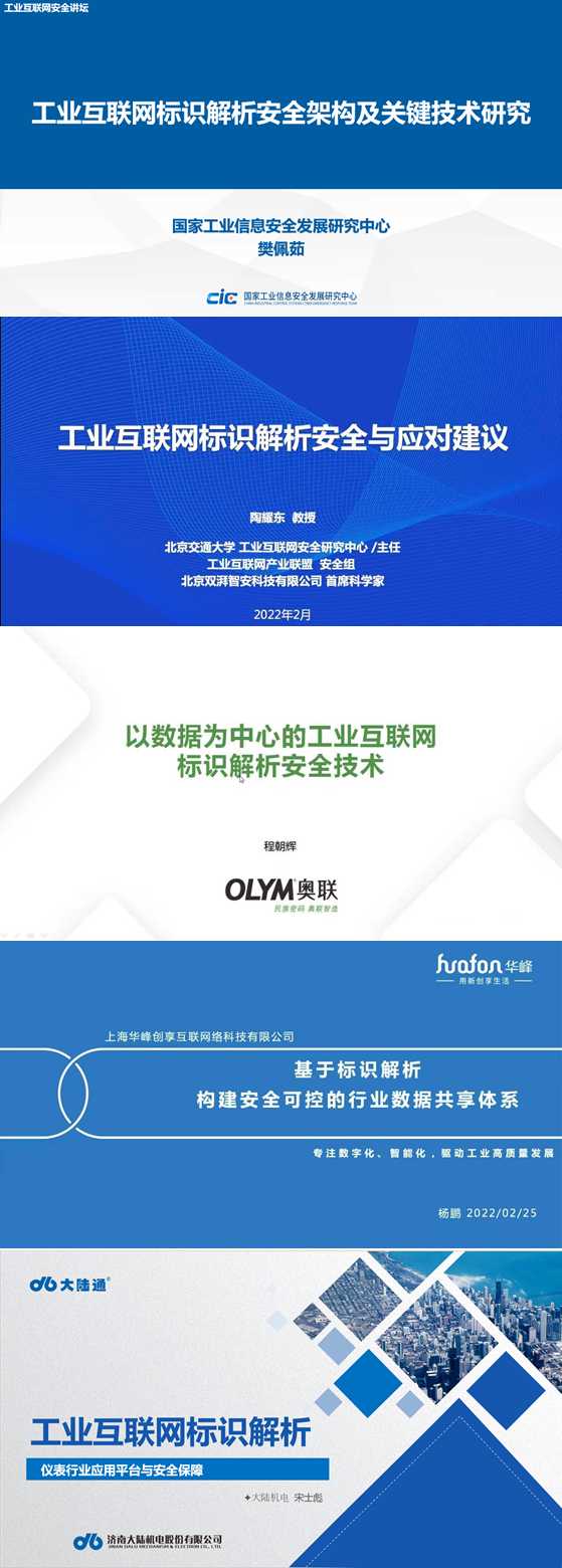 国家工信安全中心樊佩茹博士、北京交通大学陶耀东教授、深圳奥联信息安全技术有限公司首席科学家程朝辉、济南大陆机电股份有限公司总工程师宋士彪、上海华峰创享互联网络科技有限公司技术总监杨鹏等学术、产业、应用领域专家在线分享了工业互联网标识解析安全架构及关键技术研究、工业互联网标识解析安全挑战与应对建议、以数据为中心的工业互联网标识解析安全技术、基于标识解析构建安全可控的行业数据共享体系、工业互联网标识解析仪表行业应用平台与安全保障等内容,分享从多个层面构建工业互联网标识解析安全的思考与实践,对行业未来开展工业互联网安全工作提供了宝贵经验,具有重要参考意义。