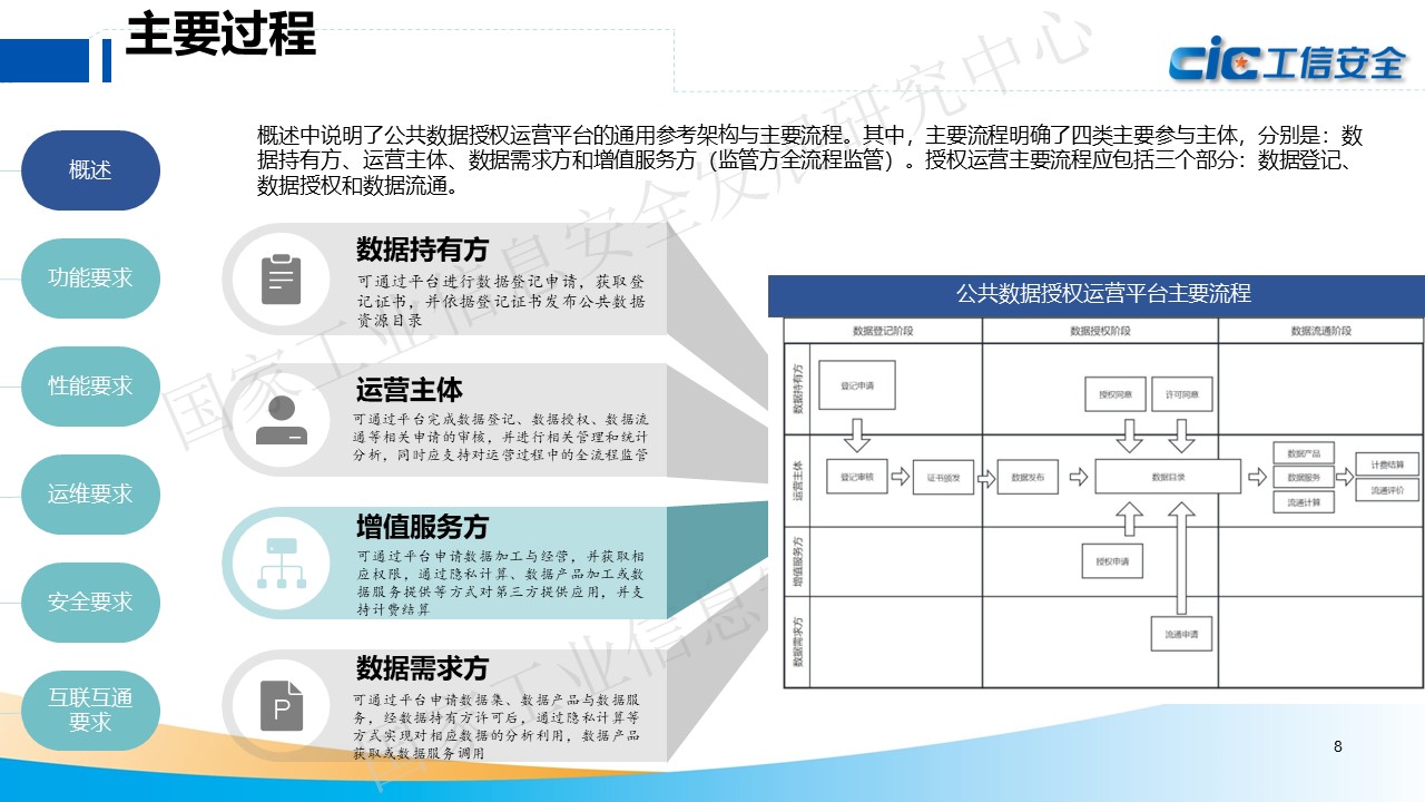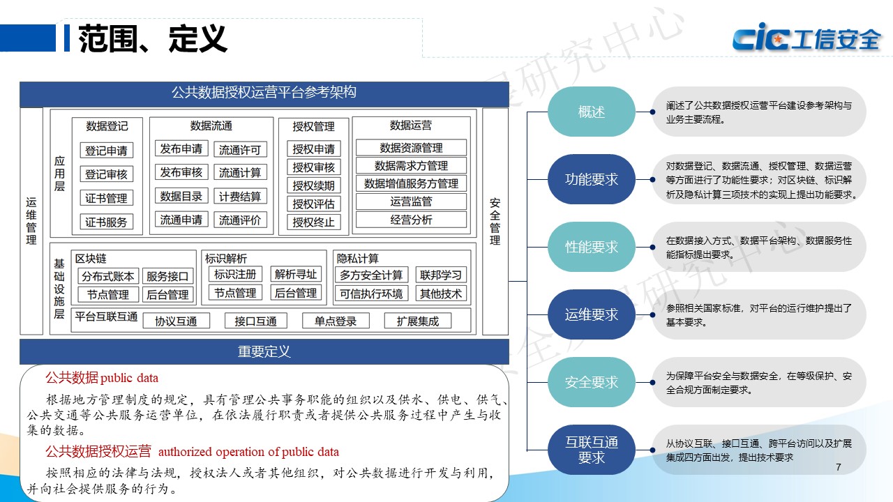 本标准定义了公共数据授权运营平台参考架构,围绕数据登记、授权、流通全流程,从功能、性能、运维、安全和互联互通等五个方面明确了平台相关技术要求。本标准的发布推出,对规范公共数据授权运营平台建设、激发公共数据要素价值、促进数字经济健康发展具有一定积极作用。