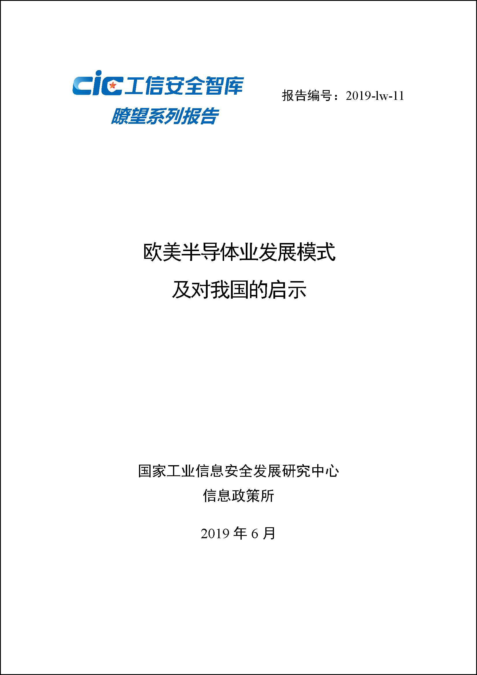 2019年6月,工信安全智库推出“瞭望系列报告”——《欧美半导体业发展模式及对我国的启示》。报告选取了欧美半导体业发展的三个不同阶段,并分析了不同阶段欧美政府采取的不同措施,提出了推进我国半导体产业发展的相关启示建议。