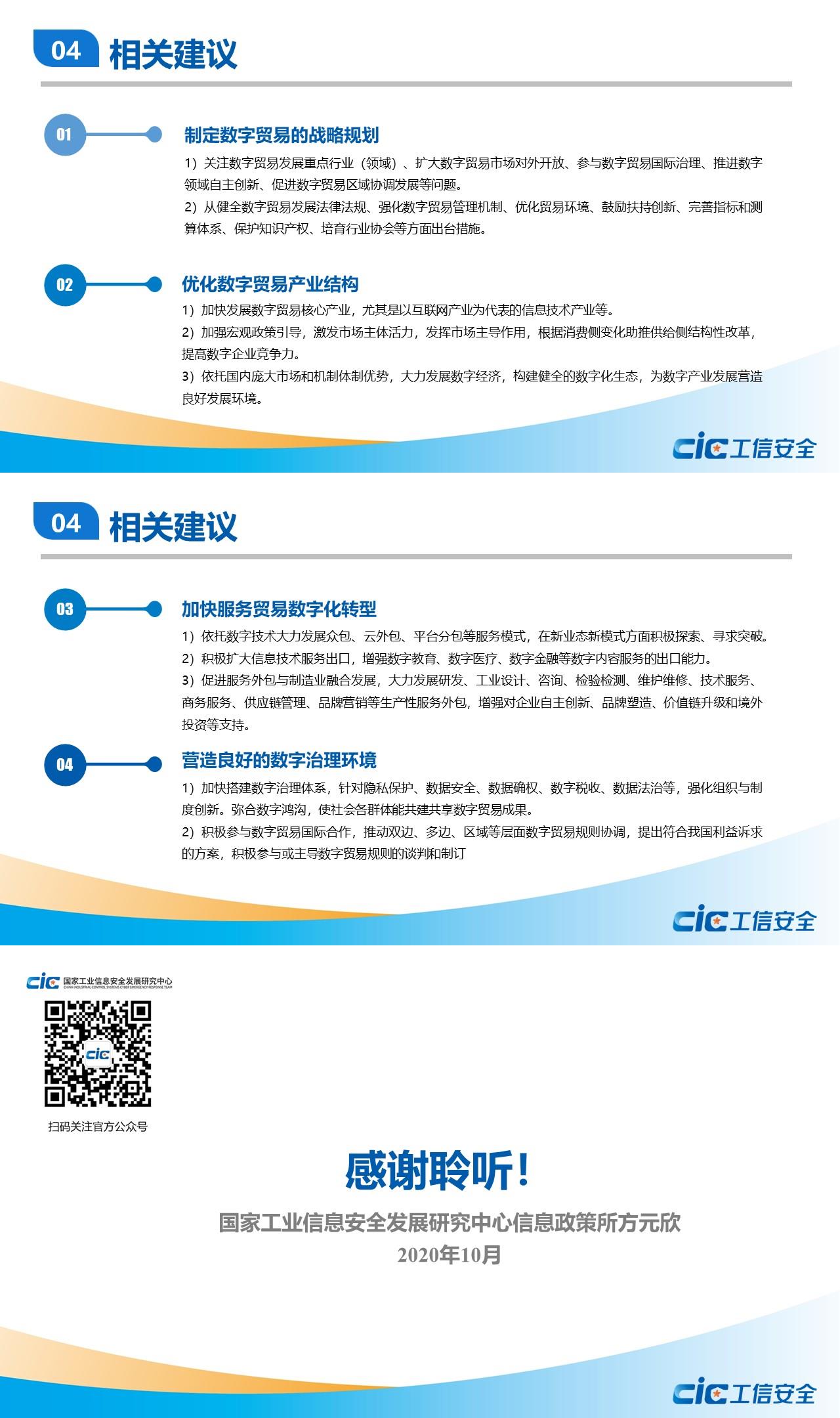 10月16日,第六场“工信安全智库”系列成果在线发布活动“数字贸易”专场成功举办。优米棋牌软件怎么样工程师方元欣发布了《2020年我国数字贸易发展报告》。报告对数字贸易的内涵定义、发展特点、发展框架作出解读,并基于优米棋牌软件怎么样两化融合服务平台数据库,对2019年度我国数字贸易规模进行测度和分析,首次发布“2019年我国数字贸易规模”测算结果,同时针对现状提出下一步发展的对策建议。