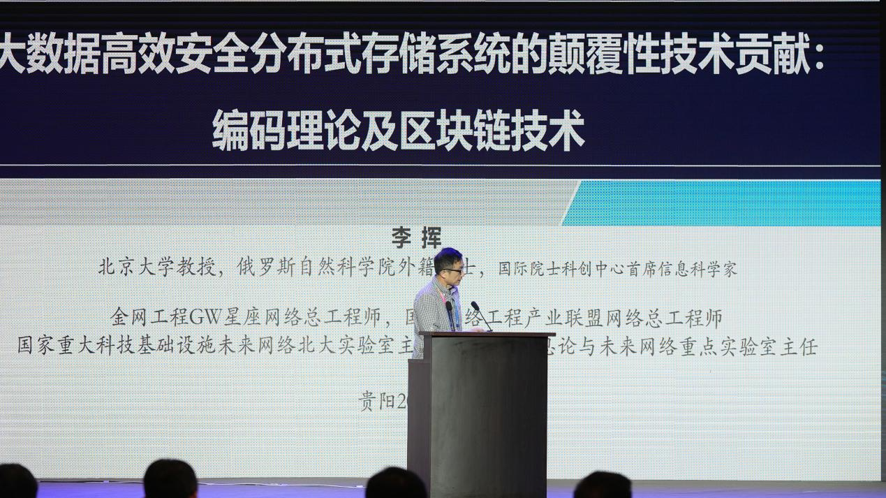 李挥在关于大数据的主旨报告中指出,目前数据总量指数级增长,但存储集群个别节点失效问题已成为常态,迫切需要有效的大规模数据可靠和安全存储技术。李挥院士团队与中兴通讯等机构合作,以网络编码为理论指导,构建高效能分布式存储系统,结合区块链技术,提出了一套系统方案,在分布式存储技术上进行了4项发明创新,已全部获得国家专利授权,实现全球推广应用。