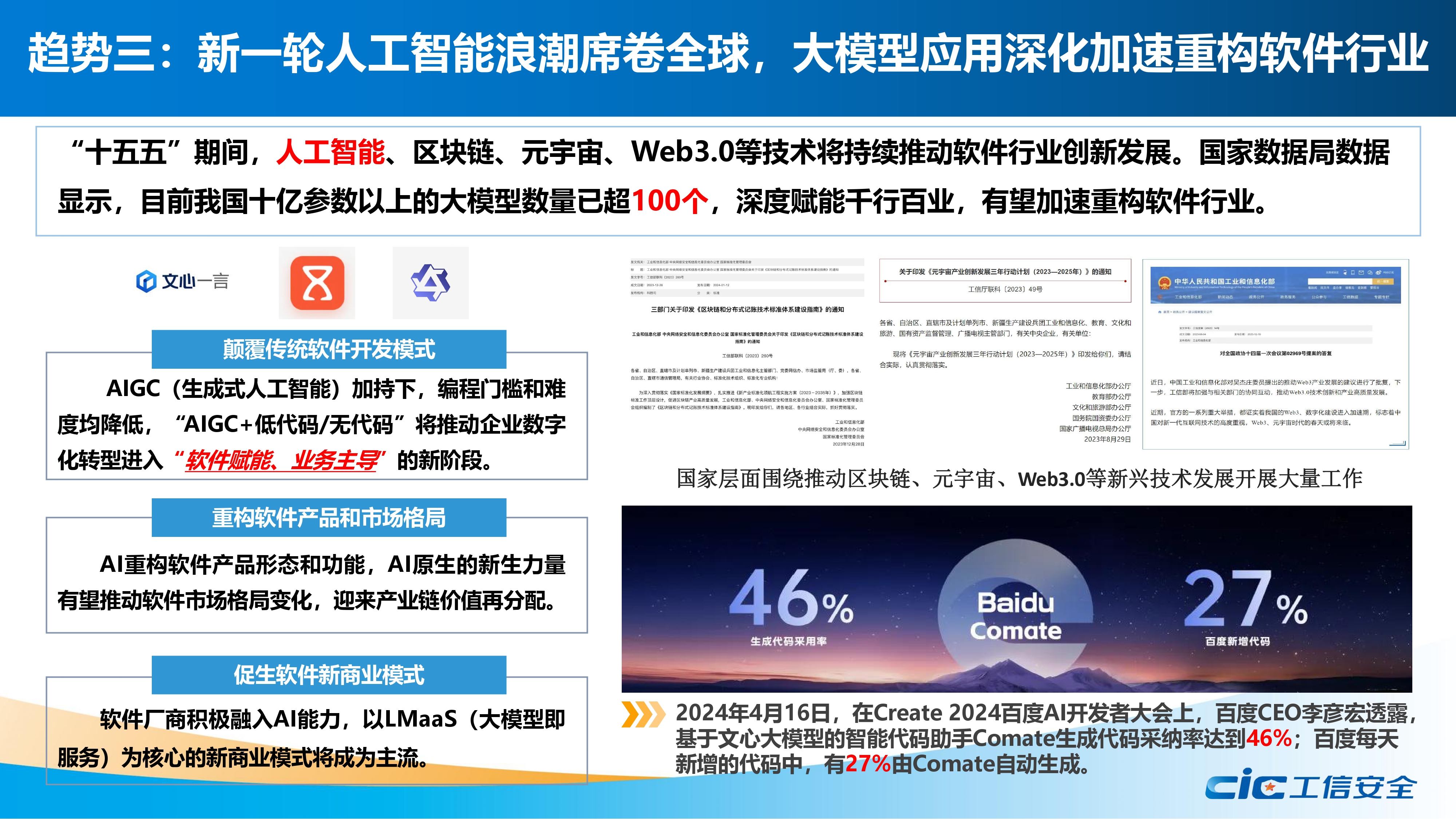 中心从软件产业发展总体态势、软件技术创新发展、软件产品迭代升级以及软件生态培育建设等方面提出了“十五五”时期软件产业发展十大趋势研判。
