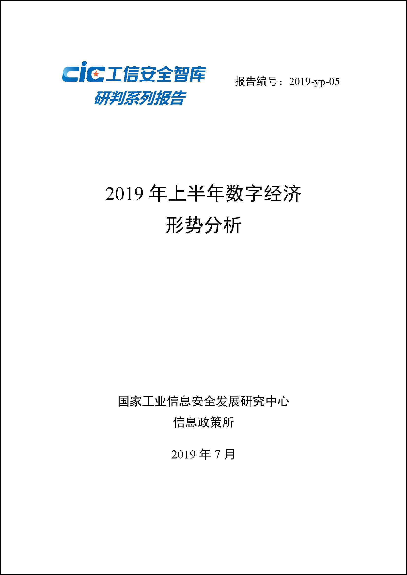 2019年7月,工信安全智库推出“研判系列报告”——《2019年上半年数字经济形势分析》。报告梳理了上半年数字经济发展的基本情况,分析了当前面临的问题挑战及发展趋势,提出了推动我国数字经济发展的政策建议。