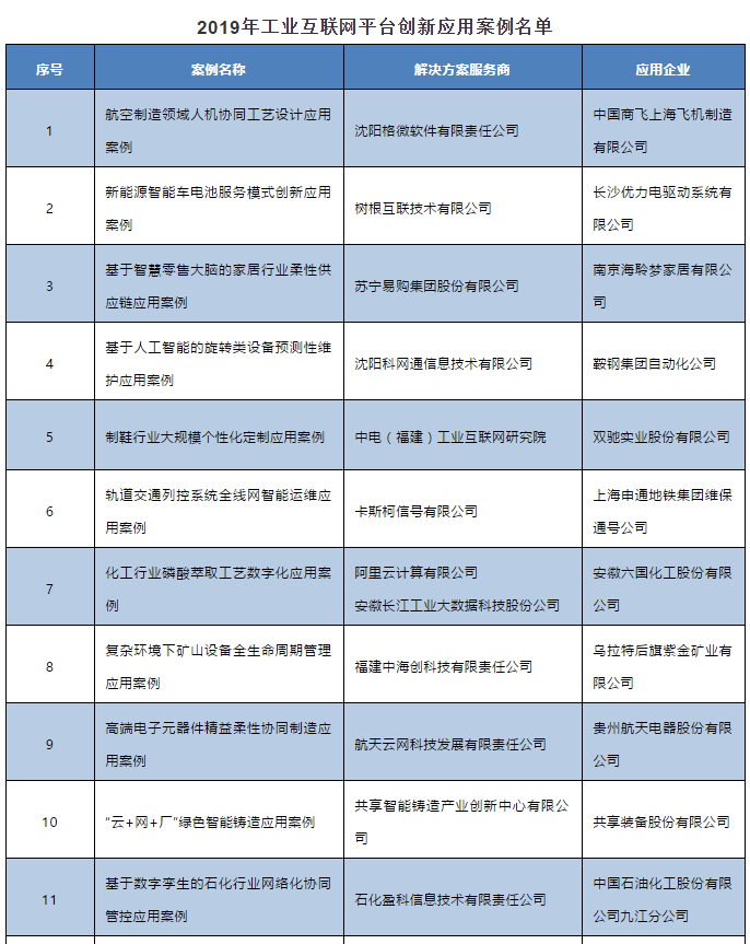 《关于公布2019年工业互联网平台创新应用案例名单的通知》