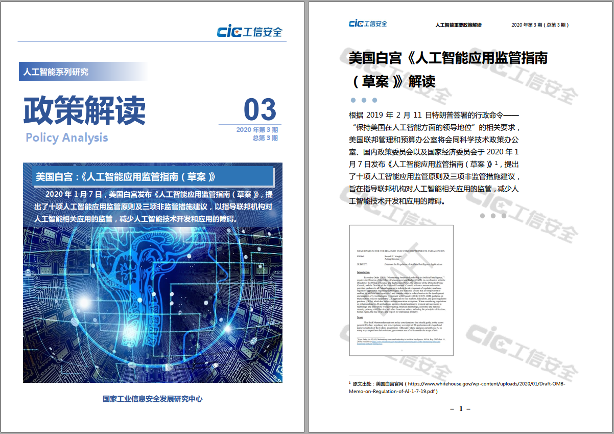 为更好地开展人工智能跟踪研究工作,自2020年2月起,国家工信安全中心人工智能所在《AI资讯》的基础上,推出人工智能系列研究产品《政策解读》及《运行分析》。《政策解读》主要围绕各国人工智能的关键举措、政策文件及重要动态,从事件背景、主要内容、社会反响等角度开展解读分析。