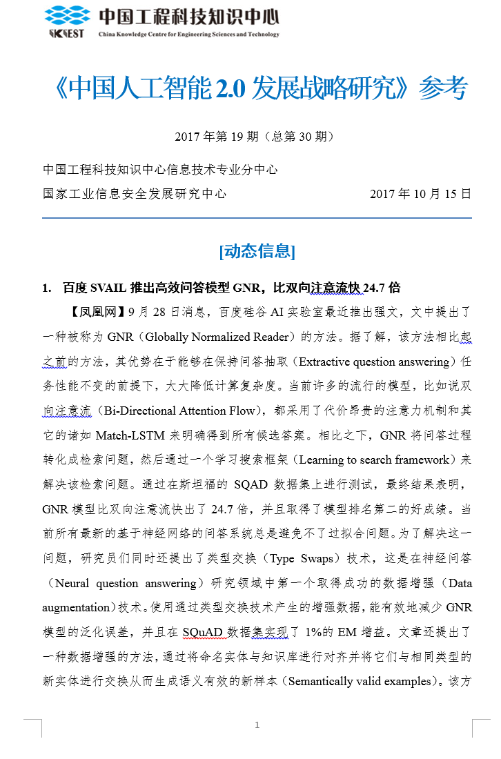 《“中国人工智能2.0发展战略研究”参考》隶属于中国工程院重大战略咨询课题,由中国科技知识中心项目办和优米棋牌软件怎么样共同创办,是人工智能领域信息资源服务的专业刊物。每期内容主要包含动态信息、原文资讯、研究报告、文献速递四个栏目,提供国内外人工智能领域最新发展动态、研究成果、市场分析报告、研究咨询报告等。每月发行两期,为“中国人工智能2.0”项目组院士专家及行业科研人员提供信息参考。