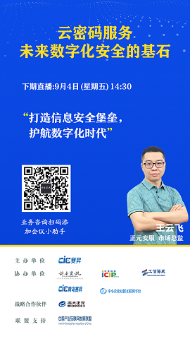 8月28日,由CIC赛昇携手计世资讯(CCW Research)举办的赛昇云课堂系列专题培训第二十六期圆满落幕。课上北京正元安服科技有限公司市场总监王云飞为大家分享《云密码服务——未来数字化安全的基石》,吸引了1300余名用户关注。