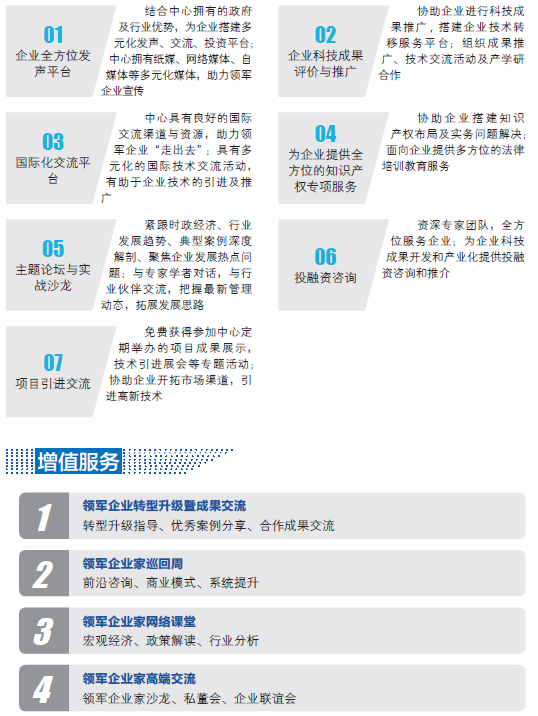 尖端技术与企业管理的交流平台:凭借中心丰富的高端行业资源与平台,以及拥有的多个协会联盟,为学员提供与尖端企业进行深入交流与学习合作的机会。