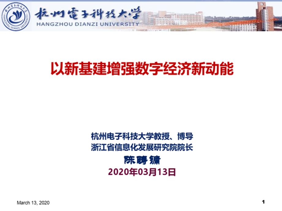 3月13日上午,优米棋牌软件怎么样主办的“加快5G、工业互联网、大数据等新型基础设施建设研讨会”以在线直播方式顺利召开。杭州电子科技大学教授、博导、浙江省信息化发展研究院陈畴镛教授直播分享了以新基建增强数字经济新动能的方式和路径。