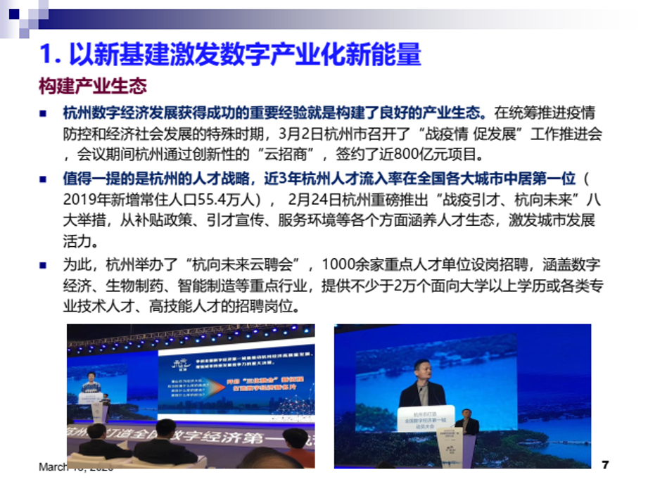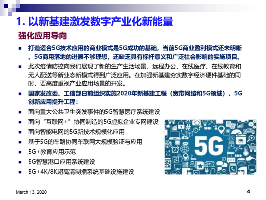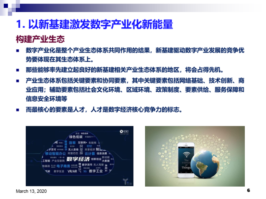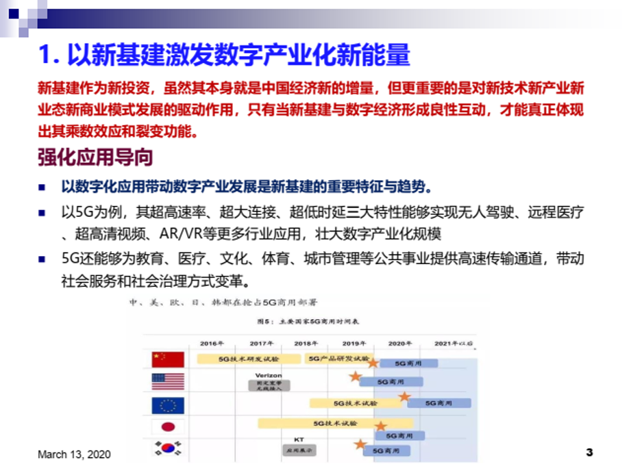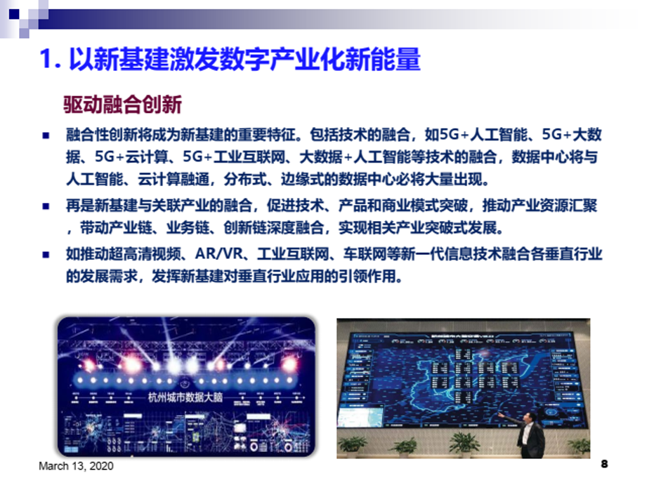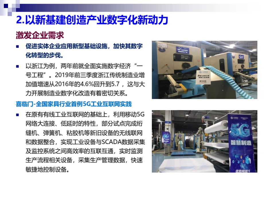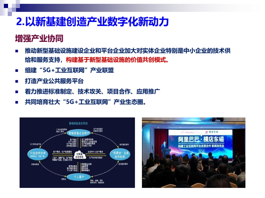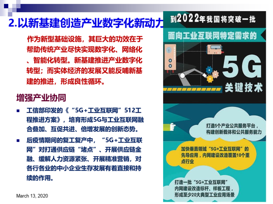 陈畴镛教授指出,新基建可以有效增强数字经济新动能。在数字产业化方面,新基建作为新投资,虽然其本身就是中国经济新的增量,但更重要的是对新技术、新产业、新业态、新商业模式发展的驱动作用,只有当新基建与数字产业形成良性互动,才能真正体现出其乘数效应和裂变功能。以数字化应用带动数字产业发展是新基建的重要特征和趋势,以新基建激发数字产业化新能量要注重强化应用导向,构建产业生态,驱动融合创新。在产业数字化方面,新型基础设施可帮助传统产业尽快实现数字化、网络化和智能化转型,而实体经济发展又能反哺新基建,形成良性循环。以新基建创造产业数字化新动能要重点关注增强产业协同、激发企业活力和需求,这是新基建有效落地和应用的重要保障。