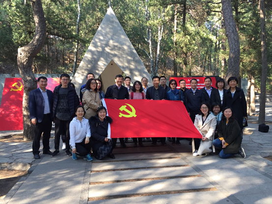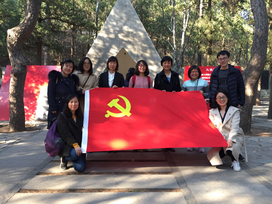 中心第十七党支部党员参观了一二•九运动纪念亭,分享讨论了“一二.九”运动的事件经过和历史意义。在中心第十七党支部书记李慧颖的带领下,全体党员肃穆伫立,右手握拳,面对党旗庄严宣誓,集体重温入党誓词。