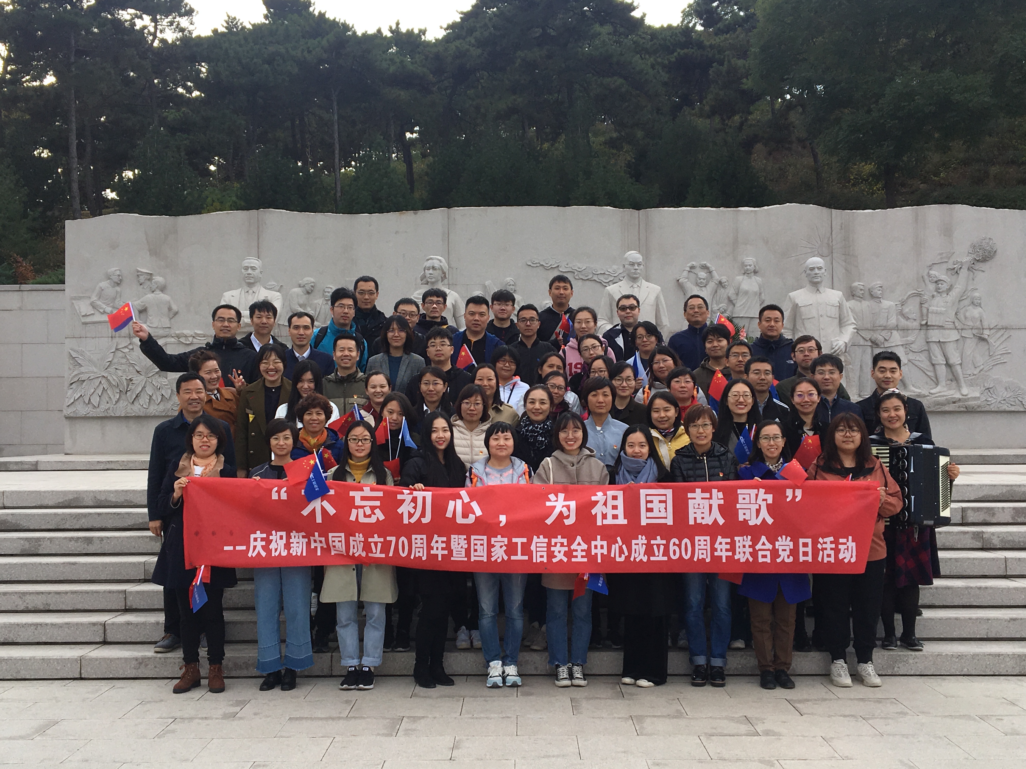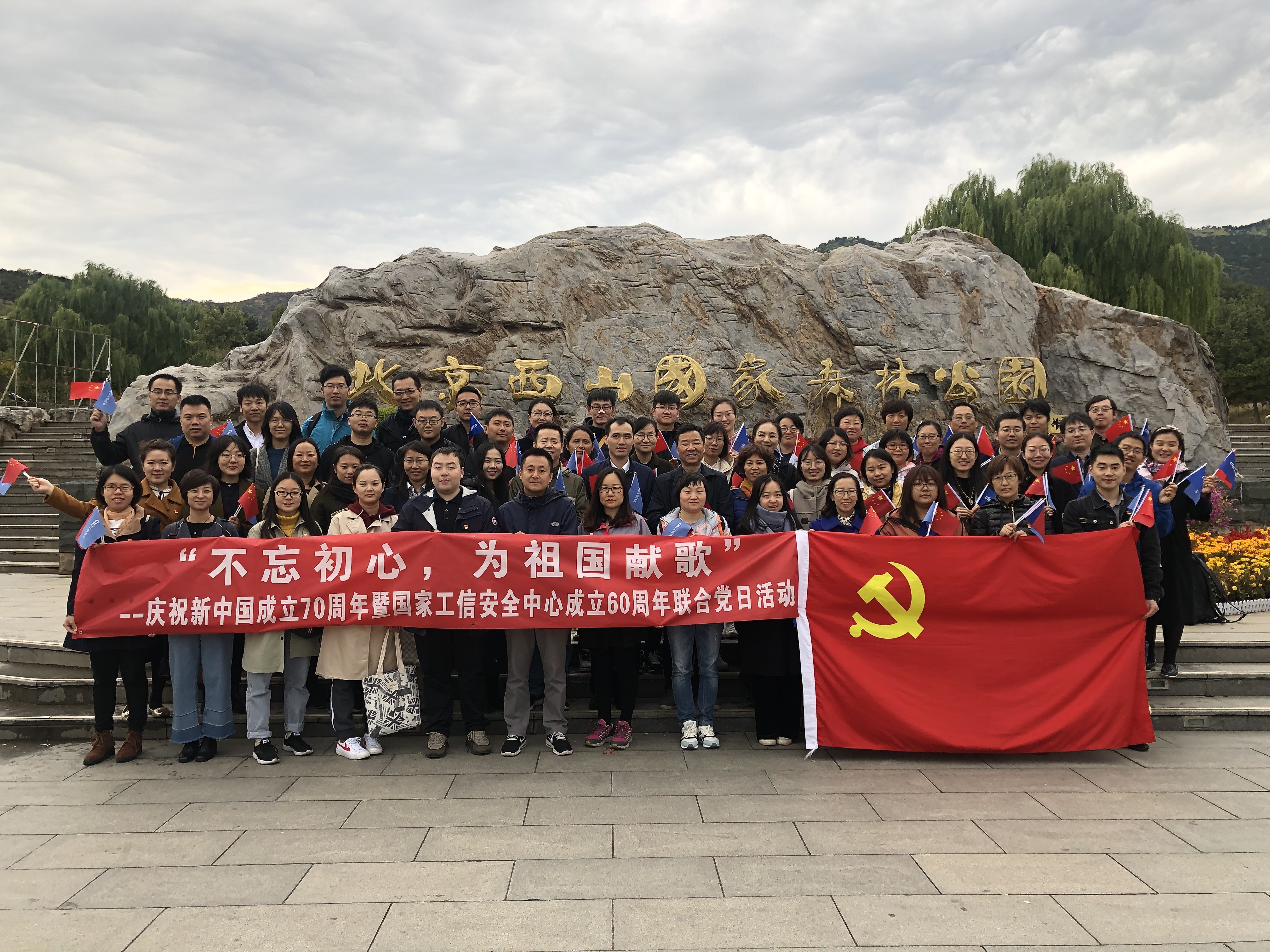 为庆祝新中国七十华诞,献礼优米棋牌软件怎么样成立六十周年,10月24日,中心第二党支部(党群工作处、纪检监察审计处)、第十三党支部(人工智能所)、第十七党支部(知识产权所)、第二十二党支部(应急响应所)于北京西山无名英雄纪念广场开展“‘不忘初心,为祖国献歌’——庆祝新中国成立70周年、中心成立60周年联合主题党日活动”。中心副主任李新社同志,党委副书记吕坚同志以及四个支部约60名党员与职工参加了本次活动。