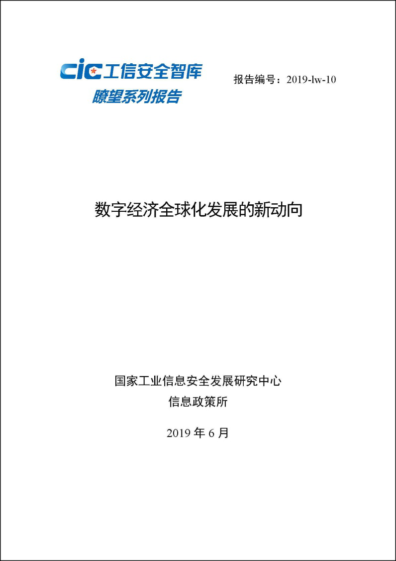 2019年6月,工信安全智库推出“瞭望系列报告”——《数字经济全球化发展的新动向》。报告主要对近年来数字技术变革对全球化发展的影响进行研究,通过解读各大国际组织发布的相关报告,总结了数字技术对全球生产方式、贸易格局与价值链的影响,强调了数字时代的互联性特征和数字合作的必要性,为我国在该领域把握机遇和应对挑战提供思路。