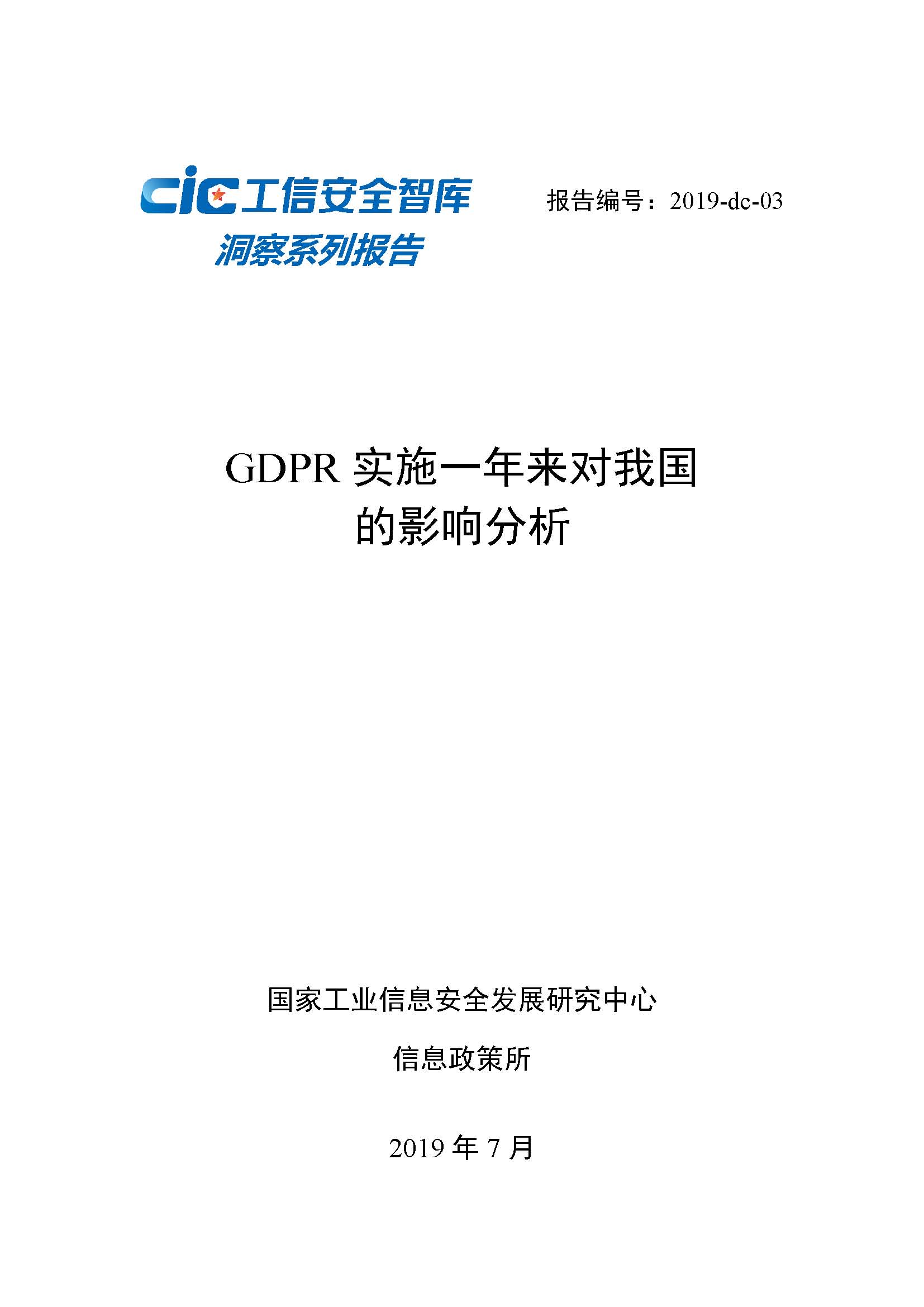 工信安全智库︱洞察系列报告:《GDPR实施一年来对我国的影响分析》