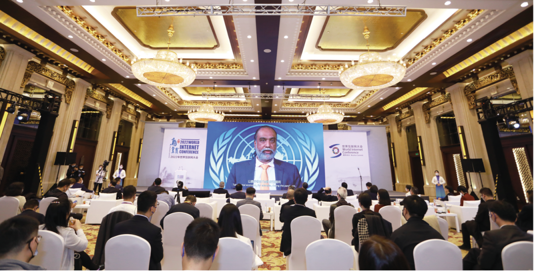 习近平总书记向2022年世界互联网大会乌镇峰会致贺信强调:“中国愿同世界各国一道,携手走出一条数字资源共建共享、数字经济活力迸发、数字治理精准高效、数字文化繁荣发展、数字安全保障有力、数字合作互利共赢的全球数字发展道路,加快构建网络空间命运共同体,为世界和平发展和人类文明进步贡献智慧和力量。”数字中国建设事关我国发展大局,开展数字领域全方位国际合作,是不断优化数字化发展环境的重要内容,是加快构建新发展格局的战略部署。 数字领域国际合作是践行网络空间命运共同体理念的必由之路。数字化的快速发展在给人们生产生活带来便利的同时,也给全球带来网络安全、隐私保护、数字鸿沟等一系列共同难题,抑制数字红利的充分释放,亟须通过国际合作携手共同应对。习近平总书记始终高度重视全球互联网发展,创造性提出“加快全球网络基础设施建设,促进互联互通;打造网上文化交流共享平台,促进交流互鉴;推动网络经济创新发展,促进共同繁荣;保障网络安全,促进有序发展;构建互联网治理体系,促进公平正义”。这“五点主张”,为构建网络空间命运共同体凝聚广泛共识。构建开放共赢的数字领域国际合作格局需呼吁各国在数字基础设施、数字经济、数字文化、网络安全、数字治理等方面加强国际合作,坚持多边参与、多方参与,尊重网络主权,发扬伙伴精神,有助于与全球伙伴携手构建更为紧密的网络空间命运共同体,助力构建开放型世界经济。 数字领域国际合作是培育全球发展新动能的重要举措。全球主要国际组织、国家和地区纷纷将数字化作为未来发展的战略选择。习近平总书记在二十国集团领导人第十七次峰会上指出,“合力营造开放、包容、公平、公正、非歧视的数字经济发展环境,在数字产业化、产业数字化方面推进国际合作,释放数字经济推动全球增长的潜力”。深化数字领域国际合作,有助于促进各国资源共享、技术创新、市场开拓、政策协调,破解发展不平衡问题,挖掘疫后全球经济复苏新动能,助力发展中国家实现跨越式发展。 数字领域国际合作是破解全球数字治理赤字的有力手段。当前,全球尚不具备统一规范的数字治理框架,各国在数字治理上缺少足够共识,相关规则孤立零散,无法形成有效治理模式与完整治理体系,数字治理赤字已成为人类社会共同面对的挑战。积极开展数字领域国际合作,有助于完善和维护以区域性机制为主的双多边数字经济治理机制,主动向世界提供数字治理公共产品,推动建立开放、公平、非歧视的数字营商环境,为全球数字治理提供中国方案。 2022年11月9日,2022年世界互联网大会乌镇峰会“全球发展倡议数字合作论坛”在浙江乌镇召开。图为联合国秘书长技术事务特使阿曼迪普·辛格·吉尔通过视频致辞。