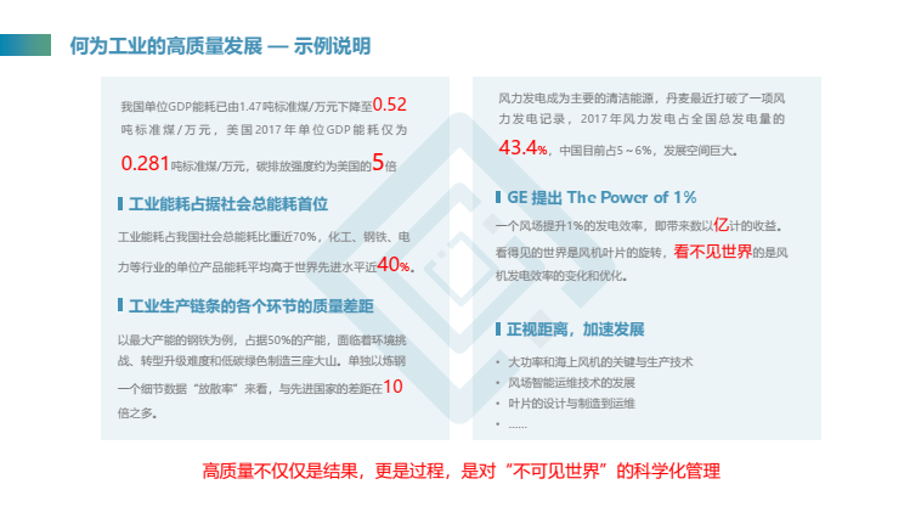高质量不仅仅是结果,更是对过程、对不可见世界的科学化管理。30年前美国通过互联网这一“新基建”抓住了发展的最高浪潮,成长出一批互联网企业巨头。今天的中国站在这一关键的破局时刻,要通过工业新基建加速工业高质量发展,对数字空间的科学化管理是实现工业高质量发展的核心问题。