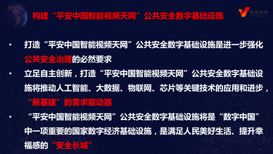 周大良总裁指出,机器视觉、人工智能、物联网、5G、IPV6等数字技术让新基建具备了实现的基础,也为我国的公共安全数字基础设施建设创造了良好的发展机遇。推动我国公共安全数字基础设施建设,一是要构建我国自主可控的公共安全标准体系,让存储在人工智能、物联网传感器等系统内的数据可以直接结构化,解析、关联、存储,实现边缘端数据的有效融合。二是要把过去录像、监控等安防方式转变为智能采集、智能数据的获取,形成全息的感知。三是要通过5G技术实现安防监控视频数据更广泛的覆盖,更低成本的建设,建立完整的部省市到区县甚至到农村全面互联互通共享,推动我国新基建相关产业的规模化应用。