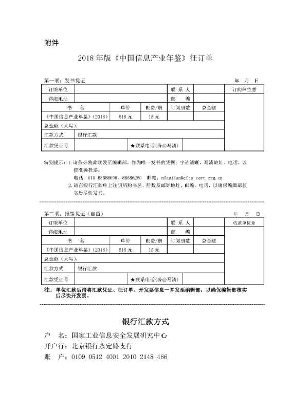 2018年版《中国信息产业年鉴》采用文章、条目、图表等多种表现形式。年鉴体例采用分类编辑法,全书由类目、分目、条目三个层次组成。本卷年鉴设类目12个,类目下设分目78个、条目640个、图68个、表370个、文章28篇。