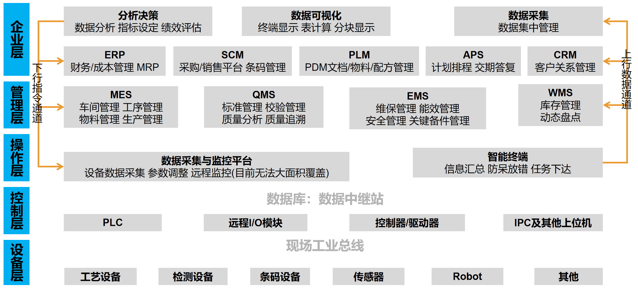 三是建设MES系统。实现生产制造过程中人员、设备、材料(物料)、作业方法、环境的管控及分析,重点是来料质量管控、过程工艺质量管控分析、设备管控、操作人员管理、生产制造环境管理等。