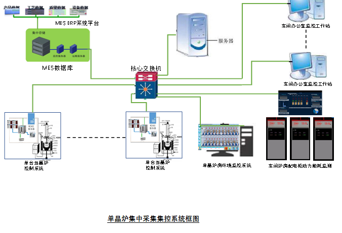 云南鑫耀半导体材料有限公司(以下简称“云南鑫耀半导体材料”)单晶炉集中采集集控系统是解决半导体单晶生长过程中对所有单晶炉温度、环境参数进行的严格集中监控,实现数据化、实时化、场景化、可追溯化管理。按照车间地域分界使用工业以太网协议进行组网通信,所有设备的数据都集中采集存储到指定核心交换机中,对接MES+ERP系统平台、智慧监控平台,推动企业半导体材料统计控制数字化转型。
