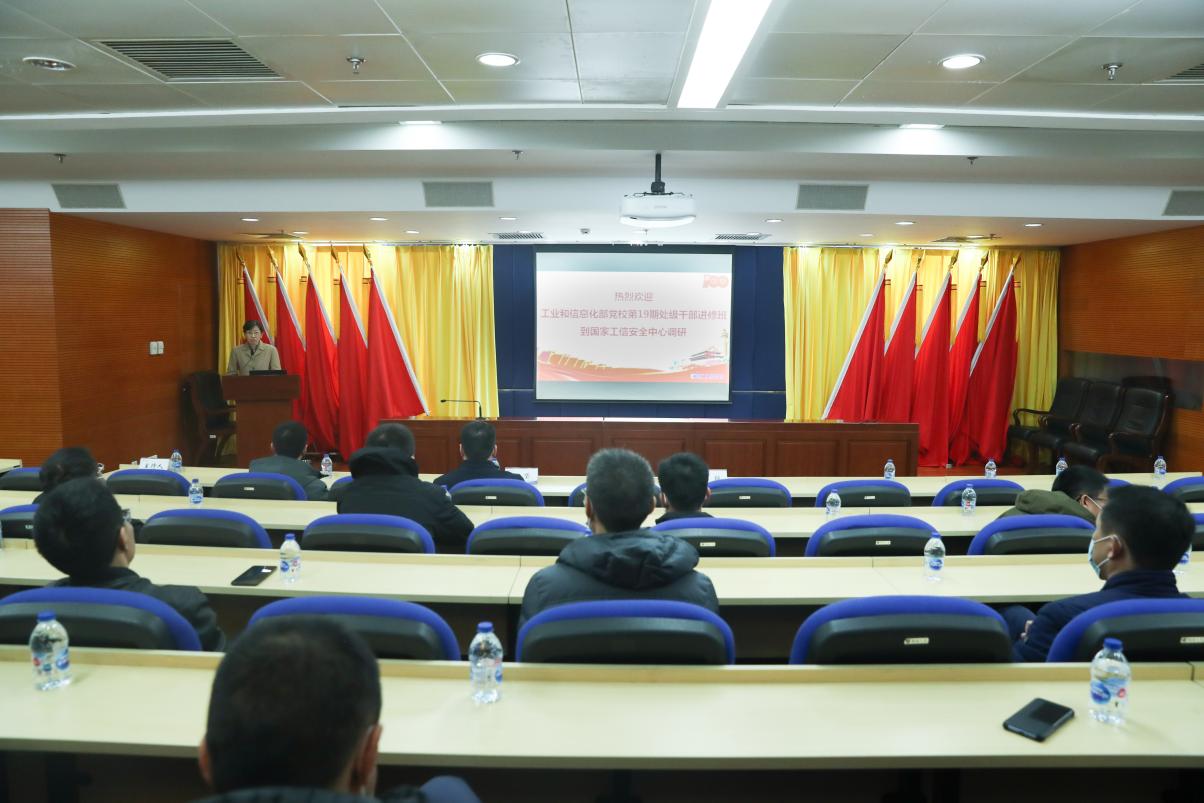 2021年12月13日下午,工业和信息化部党校第19期处级干部进修班到优米棋牌软件怎么样开展调研活动,中心党委书记、副主任蒋艳主持并致欢迎辞。