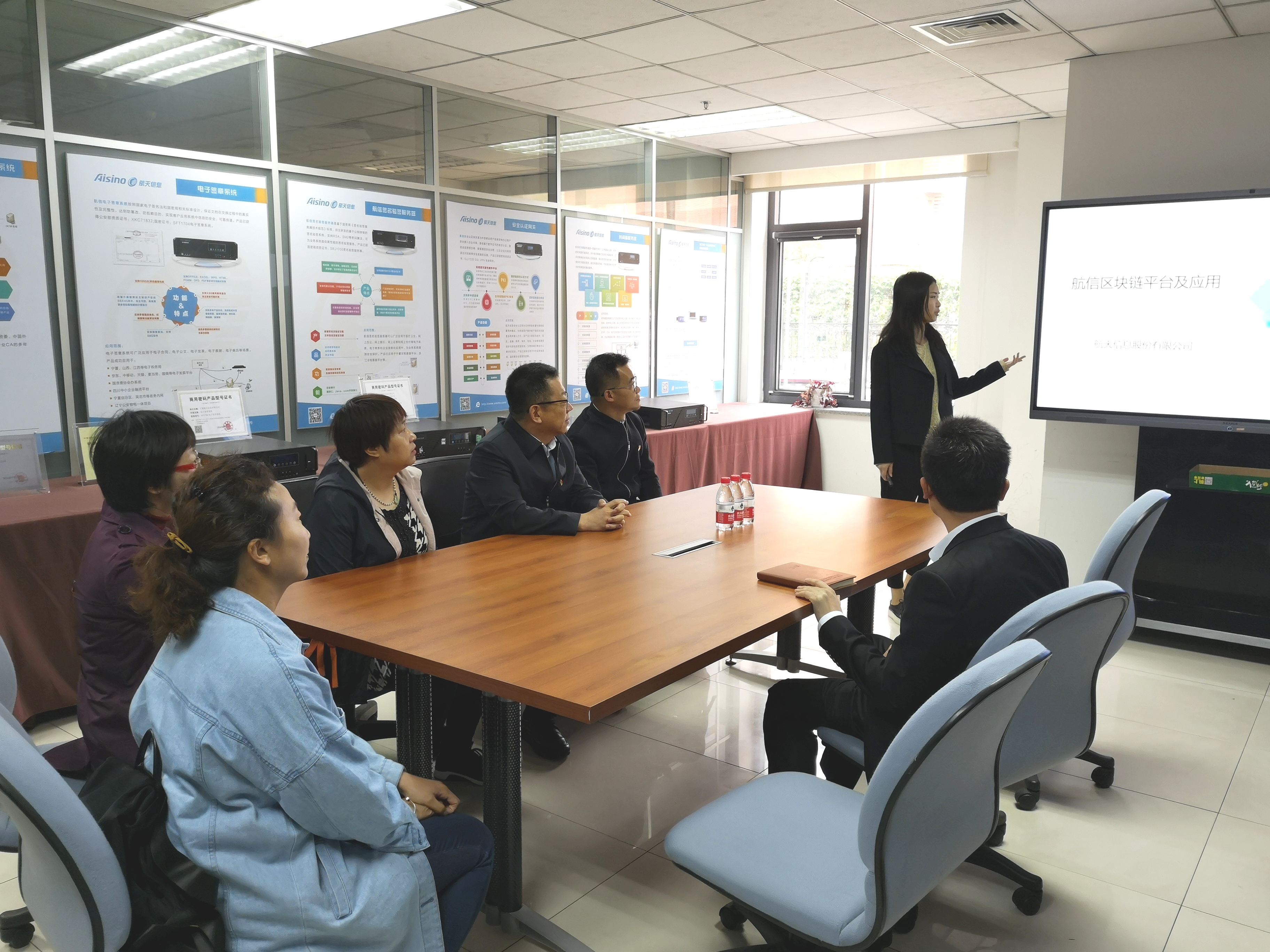 本次活动是中心职能部门与业务部门共同开展主题党日活动的一种创新形式,是加强党建与业务工作深度融合的一次积极探索。活动中,第一党支部、第十九党支部党员同志们参观了航天信息区块链实验室和商用安全可控信息技术中心。同时,双方围绕基层支部党建工作、保密管理工作、安全可靠业务、区块链业务等开展了广泛而深入地交流。第一党支部书记雷晓斌、组织纪检委员乔榕分别就中心基层党支部建设及保密工作做了详细介绍;第十九党支部书记潘妍结合部门安可业务以及区块链技术重点实验室工作情况做了交流汇报。通过交流研讨,双方增进了相互了解,达成了在党建及业务各个方面开展交流合作的意向。