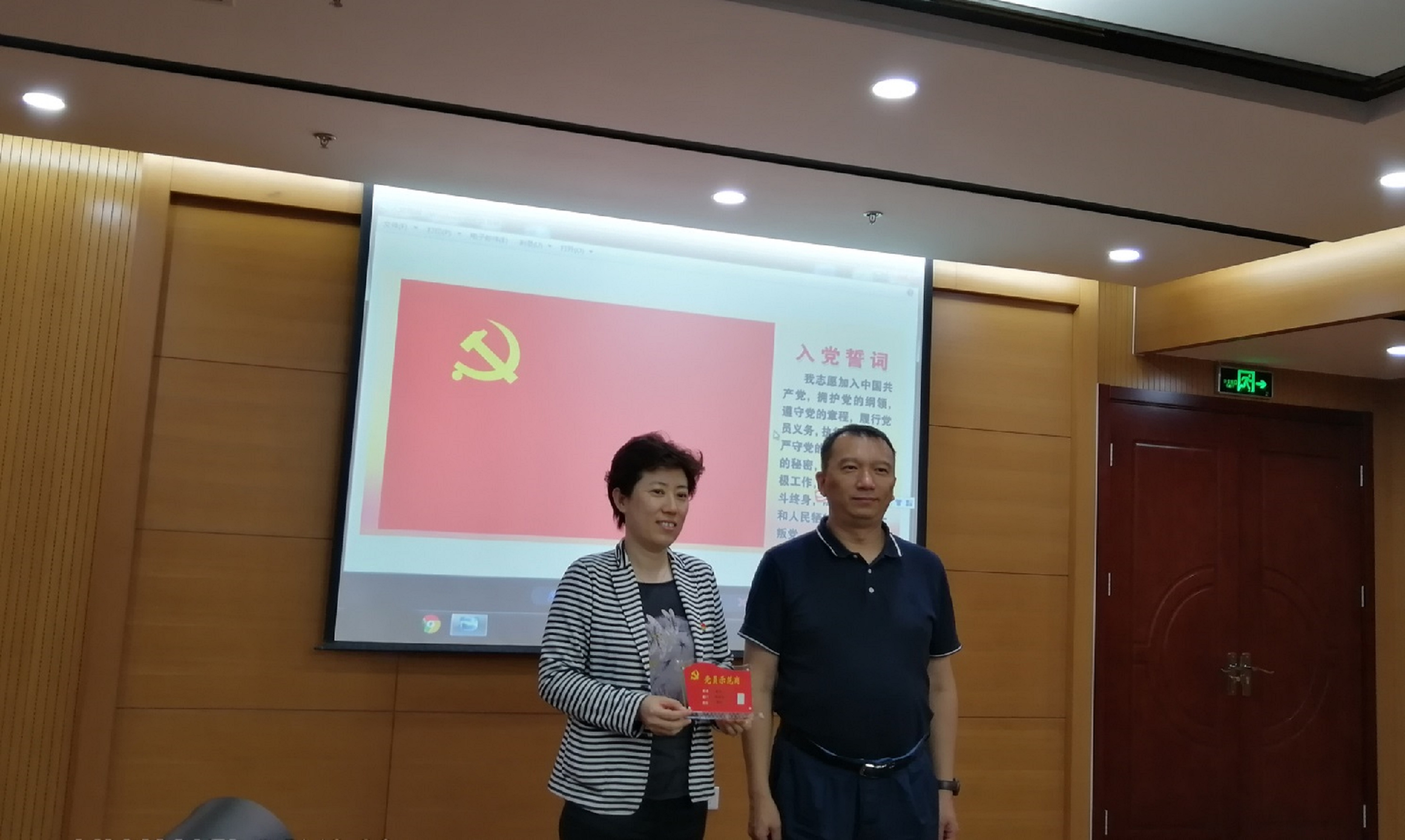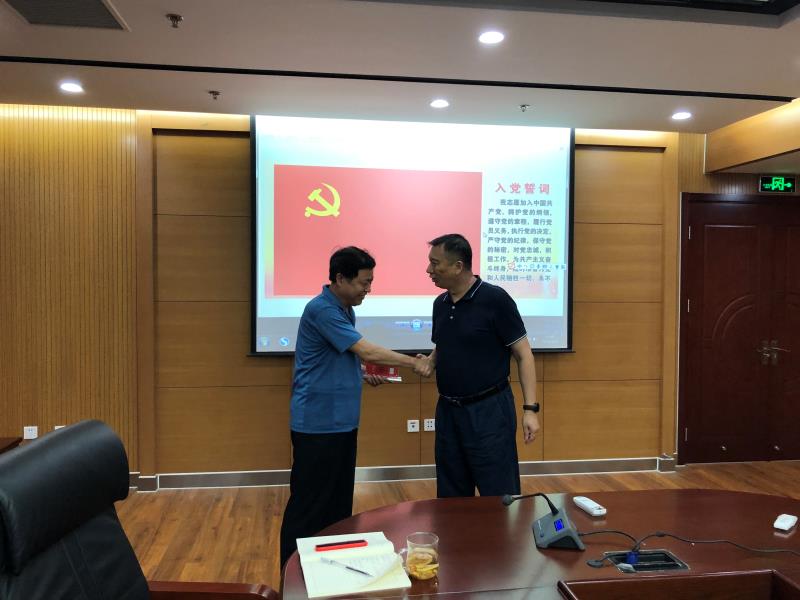 紧接着党支部举行党员先锋岗和党员示范岗授牌仪式,由程晓明同志为支部党员授牌。授予2018-2019年度优秀共产党员祝会超同志党员先锋岗,授予其他党员同志党员示范岗。通过授牌更加增强了党员和入党积极分子的责任感和使命感,更好地为中心的改革发展做好管理服务和保障。