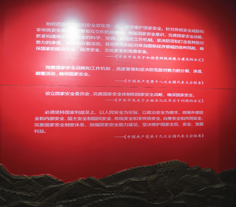 江苏国家安全教育馆是以介绍中国共产党隐蔽战线光辉历史、宣传总体安全观、普及国家安全法律法规以及共建维护国家安全人民防线为主要内容的大型国家安全主题教育展馆。党员自行参观了“无名丰碑”“无声较量”“无形战线”三个展区,通过观看图片资料和珍贵文物以及纪录片和雕塑、绘画、投影等多媒体,了解到了不同时期我党隐蔽战线惊心动魄的历史故事和无名英雄的丰功伟绩。