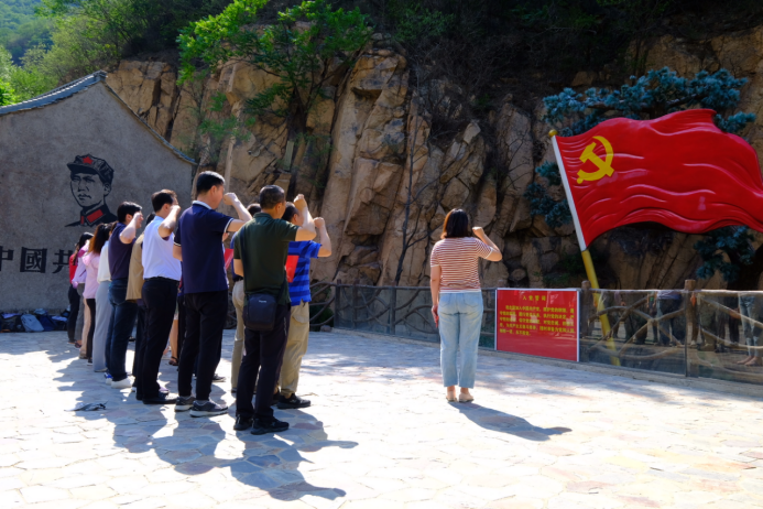 党员同志们参观了古战场、村史馆、红色纪念馆。宣誓广场上,中心第六党支部书记、条件保障处副处长潘晓风同志介绍了本次联合主题党日活动的目的及意义。第一党支部组织纪检委员、办公室副主任修松博同志做为领誓人,带领大家重温入党誓词。第七党支部书记、保密处处长乔榕同志、第一党支部书记、办公室主任田玉鹏同志为党员发放政治生日卡,集体过政治生日,进一步树立永远跟党走的理想信念,坚守入党初心,不忘铮铮誓言。