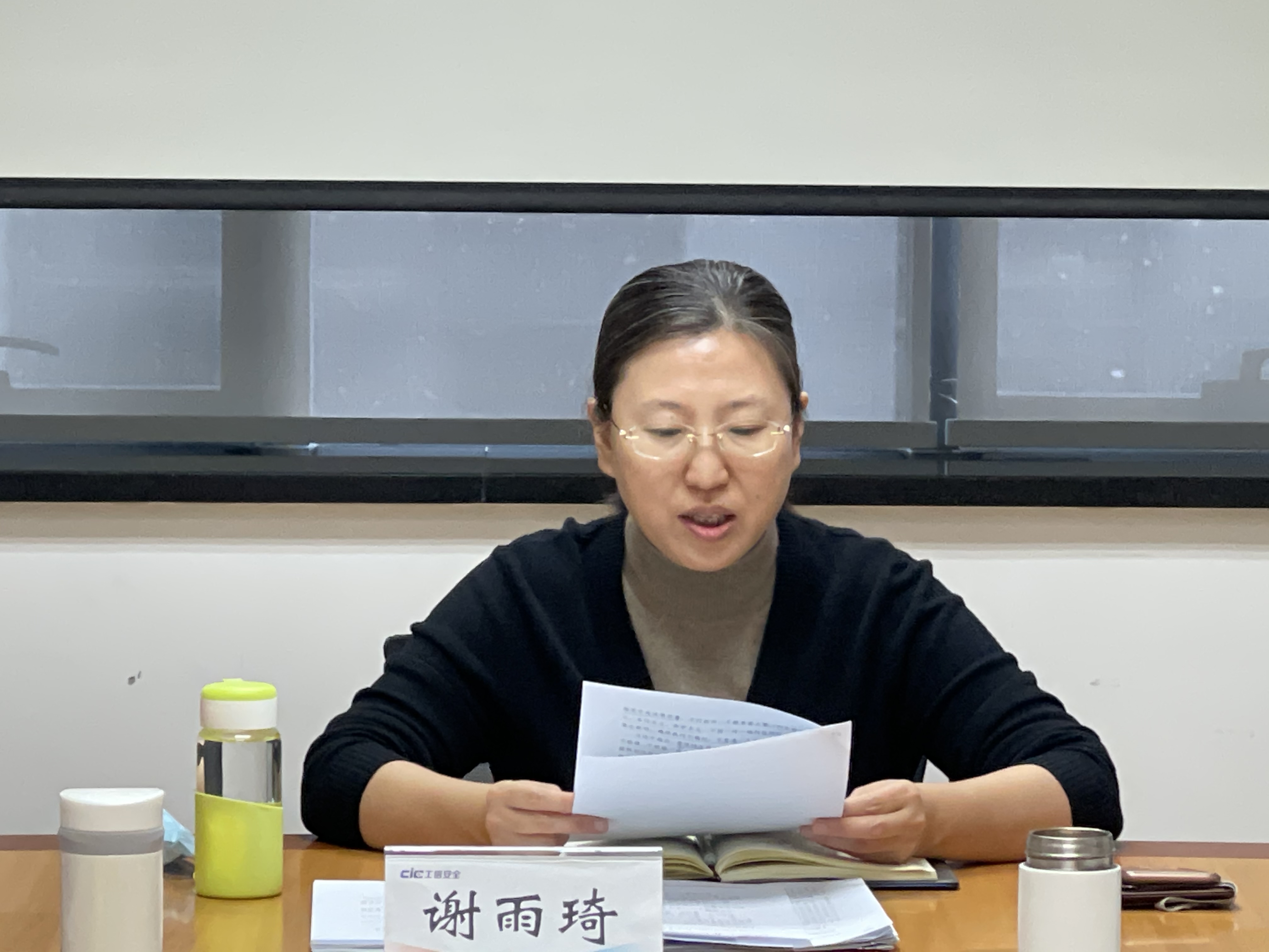会上,谢雨琦传达学习了习近平总书记在十九届中央纪委六次全会上的重要讲话精神,学习了《中国共产党纪律检查委员会工作条例》,汇报了联系党支部工作情况,讨论了2021年度纪委工作总结、廉政风险防控工作总结以及推进全面从严治党工作。