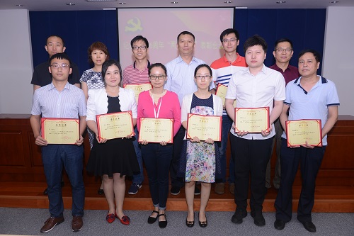 尹丽波宣读了中心关于表彰先进党支部、优秀共产党员和优秀党务工作者的决定。2016-2017年,经支部推荐,党支部书记初评,党委会审议,第二、第八、第十一党支部获选优秀党支部荣誉称号,张芳芳等20名党员获选优秀共产党员,毛超等9名党员获选优秀党务工作者。会议号召,全体党员要积极向先进学习,见贤思齐,激发自己干事创业的内生动力;受到表彰的集体和个人要再接再厉,不断创新,为打造中心核心竞争力做出新的更大贡献。中心党政领导班子成员为获表彰人员颁发了荣誉证书,并合影留念。