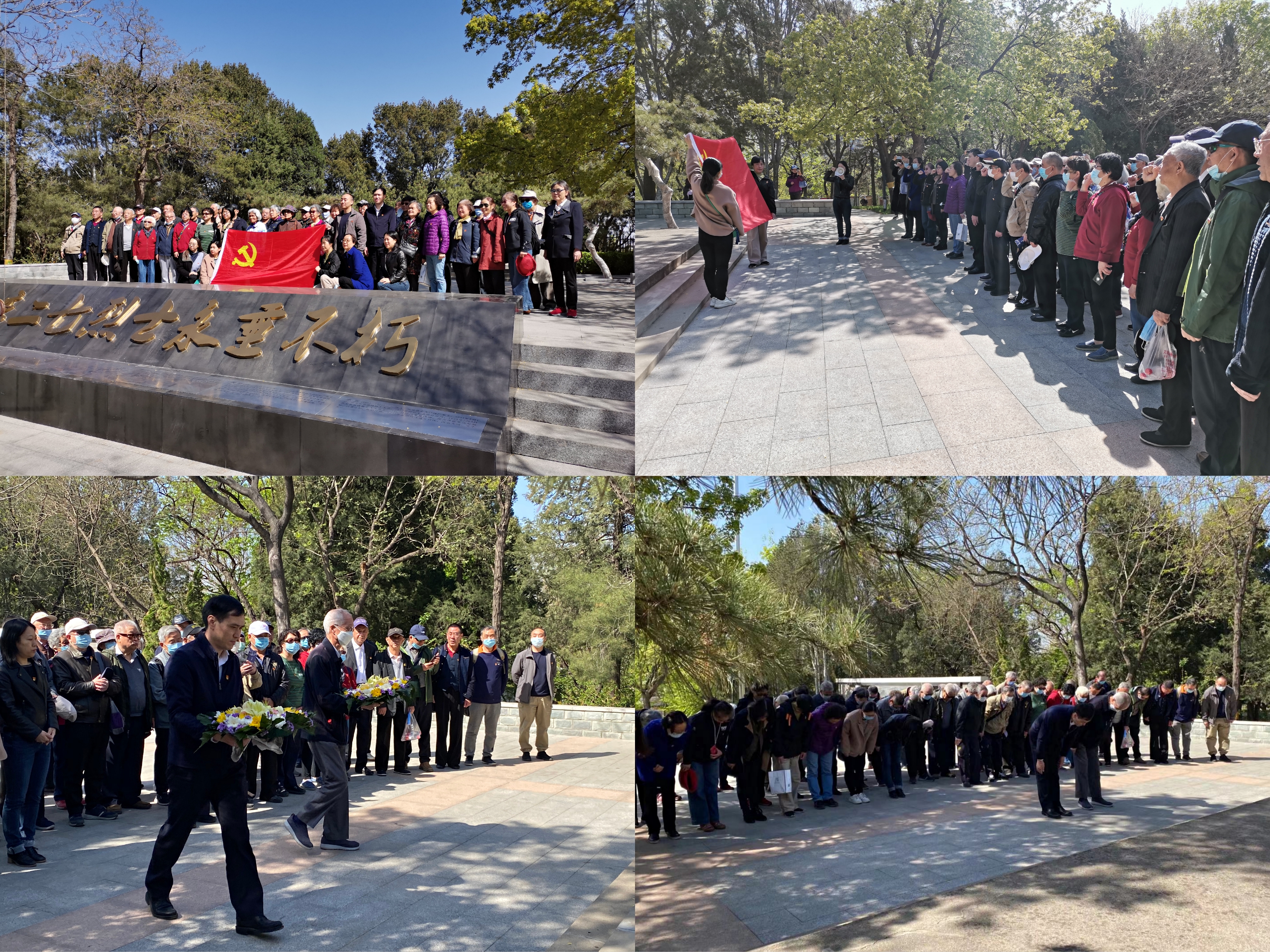 青老党员在烈士墓前庄严肃立、寄托哀思,离退办工作人员讲解了长辛店中国工人运动的历史和“二七大罢工”的前后经过。吕坚和退休党员王人杰向烈士墓敬献了花圈。党群工作处处长敖娜带领大家重温入党誓词。