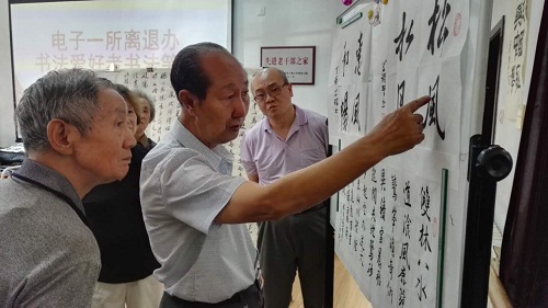 中心聘请了中国硬笔书法协会马祯贵老师讲解如何鉴赏书法作品;邀请了年近八旬资深书法爱好者黄史坚介绍了其书法作品的创作思路。活动中,十余位老年书法大学学员分别展示了自己书法作品,马老师对作品逐一进行了点评。