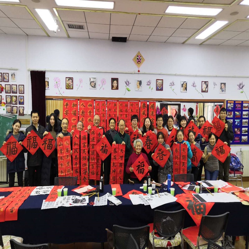 每逢春节,人们都喜欢用红纸写上“福”字“春”字,搭配春联贴在大门外增添喜庆,期盼吉祥。2019年1月15日,优米棋牌软件怎么样在老干部活动中心举办了“青老共建迎新春 翰墨飘香送祝福”主题活动。在职第十一党支部和老年大学书法班退休党员参加了此次活动。