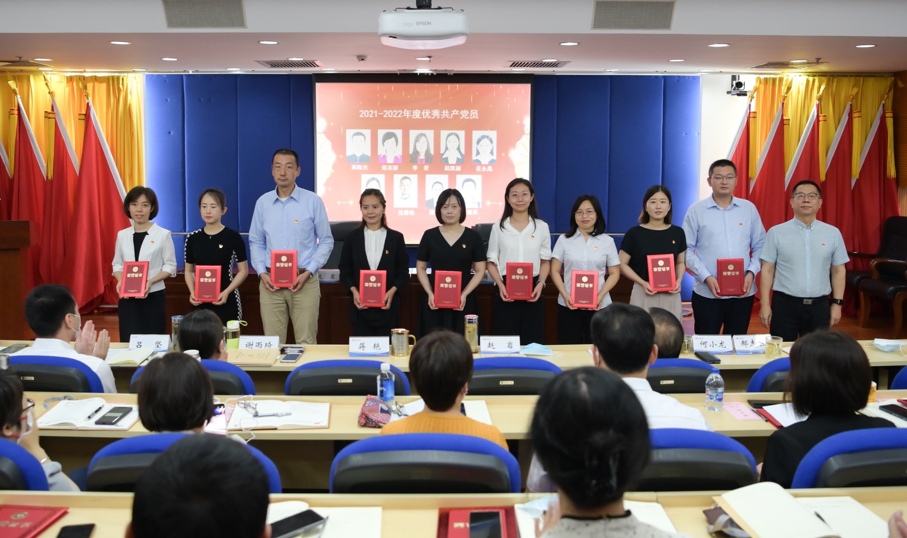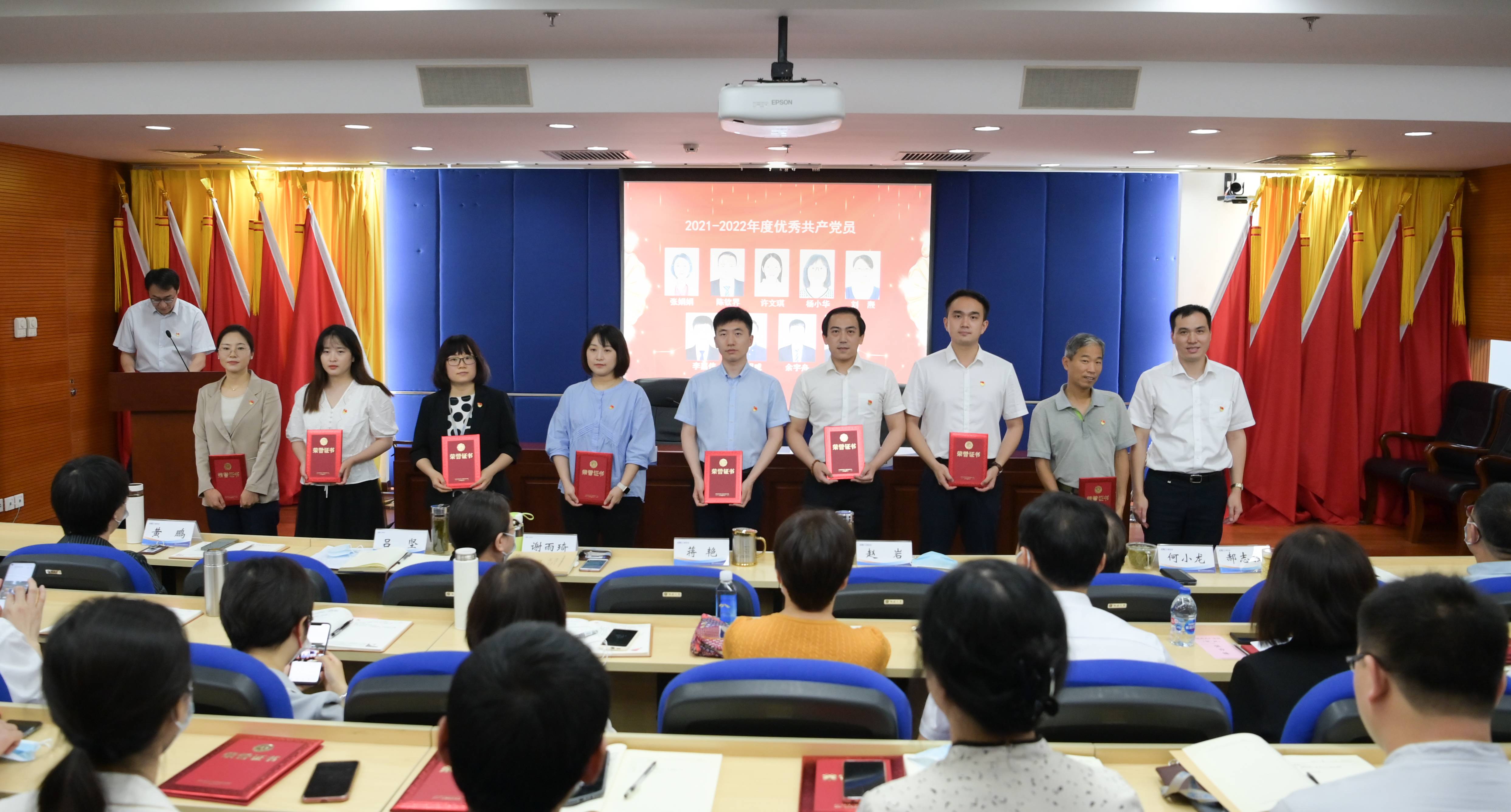 中心领导班子成员、党支部书记、中层干部、支部委员、受表彰人员以及广大普通党员共200余人通过线上线下方式参会。